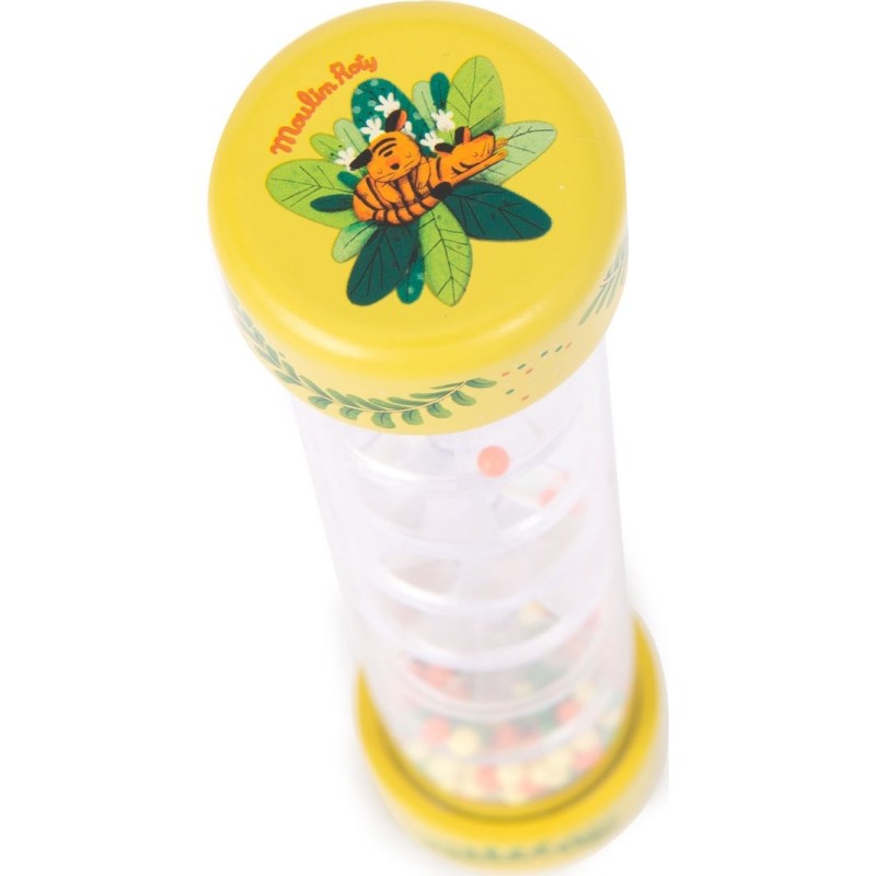 Le baton de pluie pour enfant de Moulin Roty est décoré avec de superbes illustrations de la collection Dans la Jungle.
