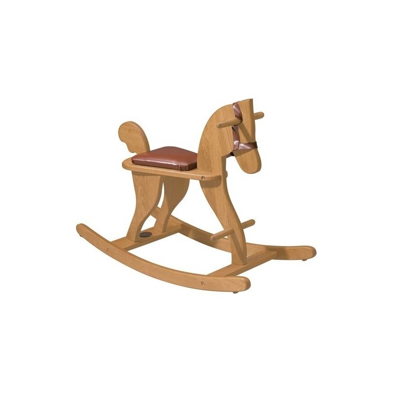 En hêtre verni, avec une assise en simili cuir, il sera un bel élément de décoration de la chambre de bébé, et lorsque l'enfant se mettra debout, il s'émerveillera à basculer sur le cheval.