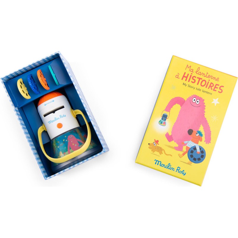 Découvrez la lanterne 3-en-1 à la fois projecteur d'histoires, d'ombres et veilleuse.