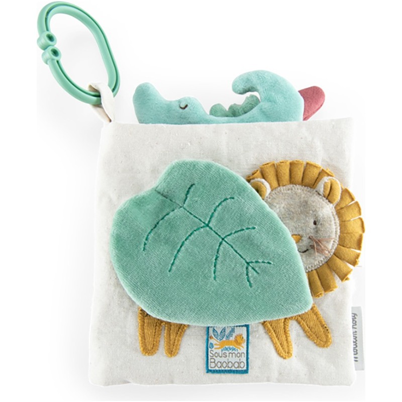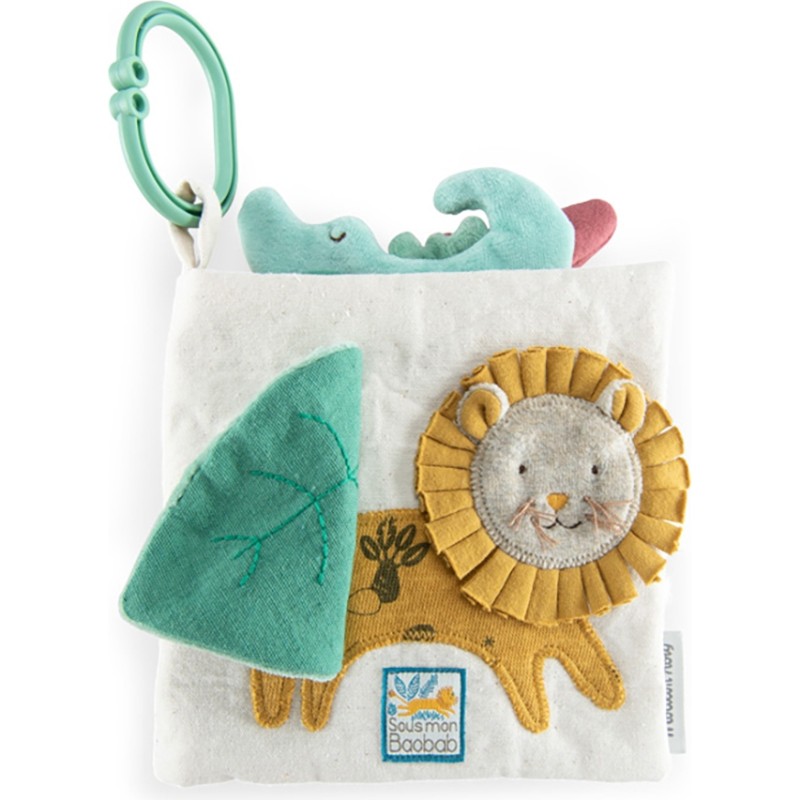 Vous cherchez un cadeau de naissance qui soit à la fois beau et éducatif ? Ne cherchez pas plus loin que le livre d'activités en tissu Sous Mon Baobab de Moulin Roty. Ce joli livre en tissu représente les personnages de la collection Sous mon Baobab en relief, cachés sous les feuilles de la savane.