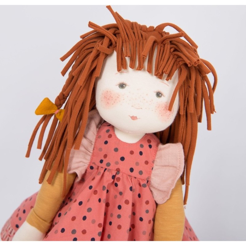 Moulin Roty, la marque spécialiste des jouets authentiques, a créé avec les « Rosalies », des poupées au style rétro, résolument tendance. Anémone est habillée d’une jolie robe à pois et de chaussons de danse satinés. Elle a de beaux cheveux roux en jersey roulotté qui lui donnent encore plus de charme.