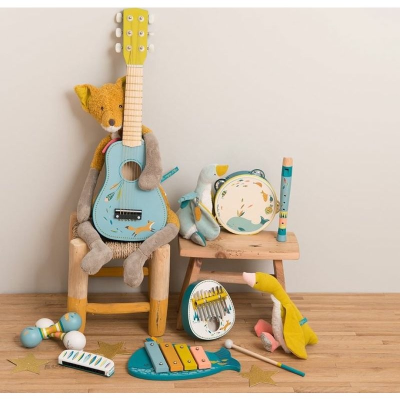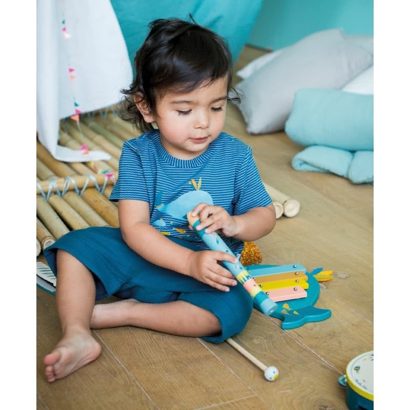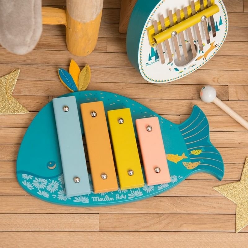 Le Xylophone pour enfant en bois baleine de Moulin Roty est l'un des instruments de musique pour tout petit de la collection Le Voyage d'Olga.