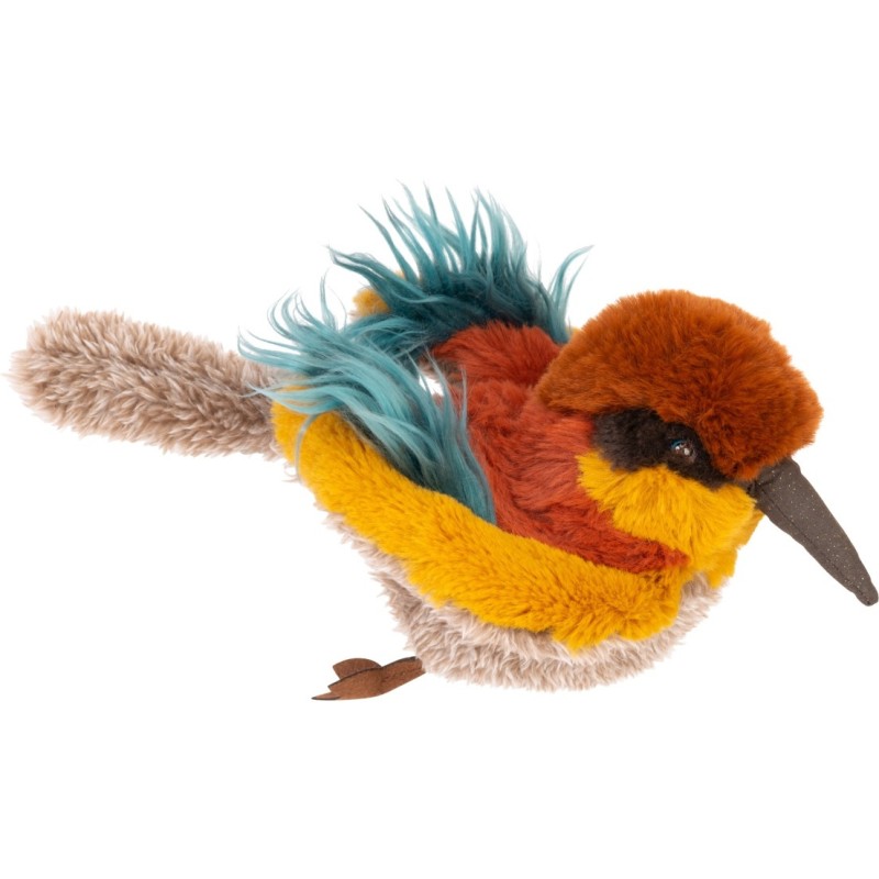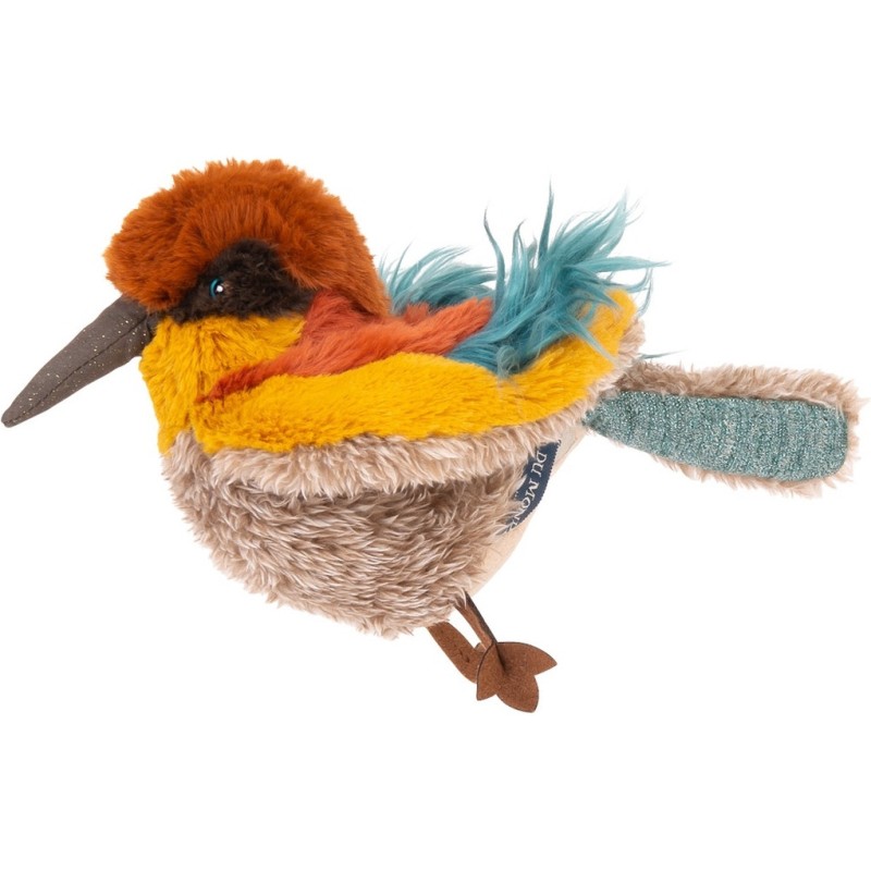 Adorable avec son doux plumage mélangeant orange brique, ocre et turquoise, ce petit oiseau friand de guêpes excelle dans les airs. Niché dans la paume de main ou glissé dans la poche, il accompagnera les petits dans leurs voyages tout autour du monde...