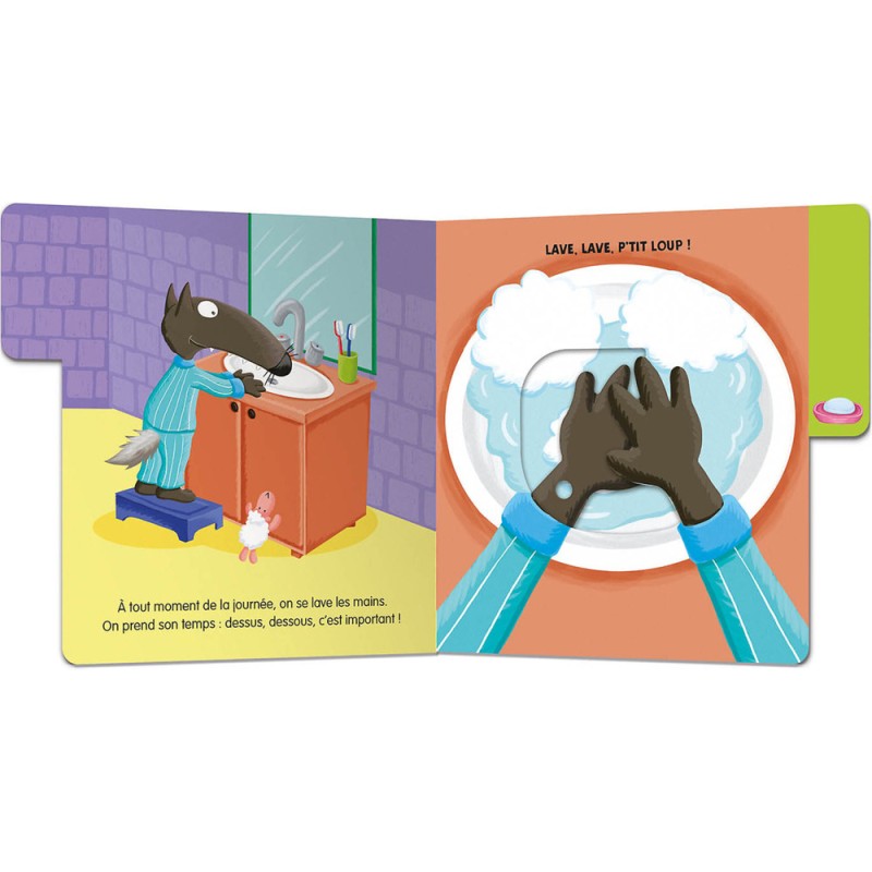 Découvrez le livre jeunesse P'tit Loup de la marque Auzou !Un nouveau titre dans la collection des livres à onglets P’tit Loup ! Après Au dodo P’tit Loup et P’tit Loup apprend à s’habiller, P’tit Loup fait découvrir à l’enfant tous les rituels de la journée en rapport avec le propreté : se laver les mains, aller sur les toilettes, se laver, se brosser les dents… Un livre avec un mécanisme par double-page, toujours en rapport avec le thème, et un petit imagier de la propreté sur la dernière double-page. A partir de 1 an.