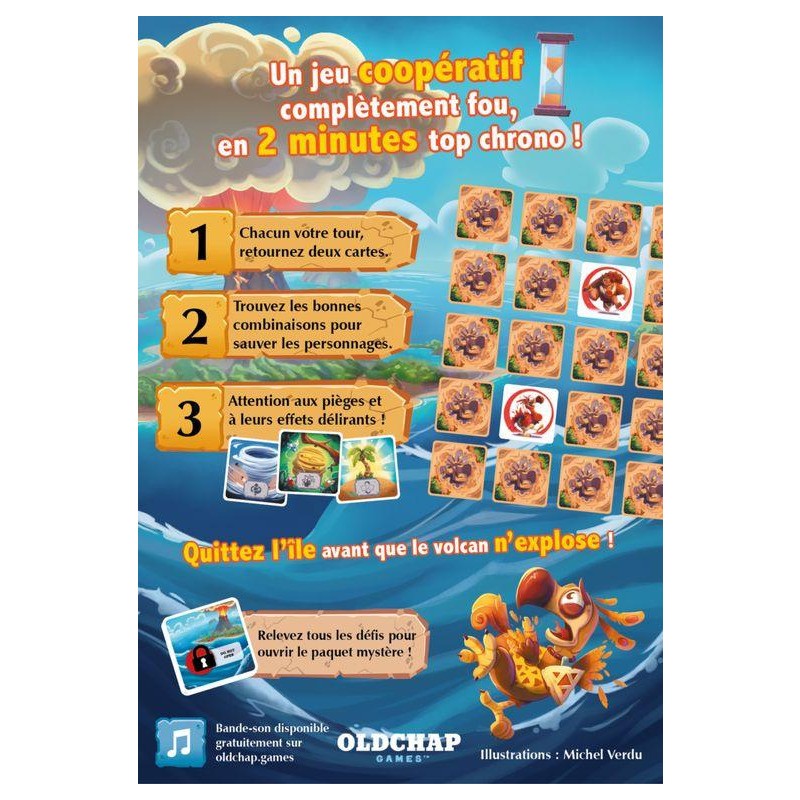 La communication sera votre alliée pour triompher de ce défi. Échangez des informations, partagez vos découvertes et coordonnez vos actions pour sauver le plus grand nombre d'habitants possible. La cohésion de votre équipe sera la clé de votre réussite. Sauvez les habitants de Panic Island, évitez les pièges et échappez à l'explosion imminente du volcan ! C’est simple comme bonjour !