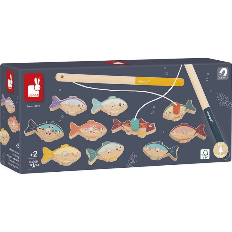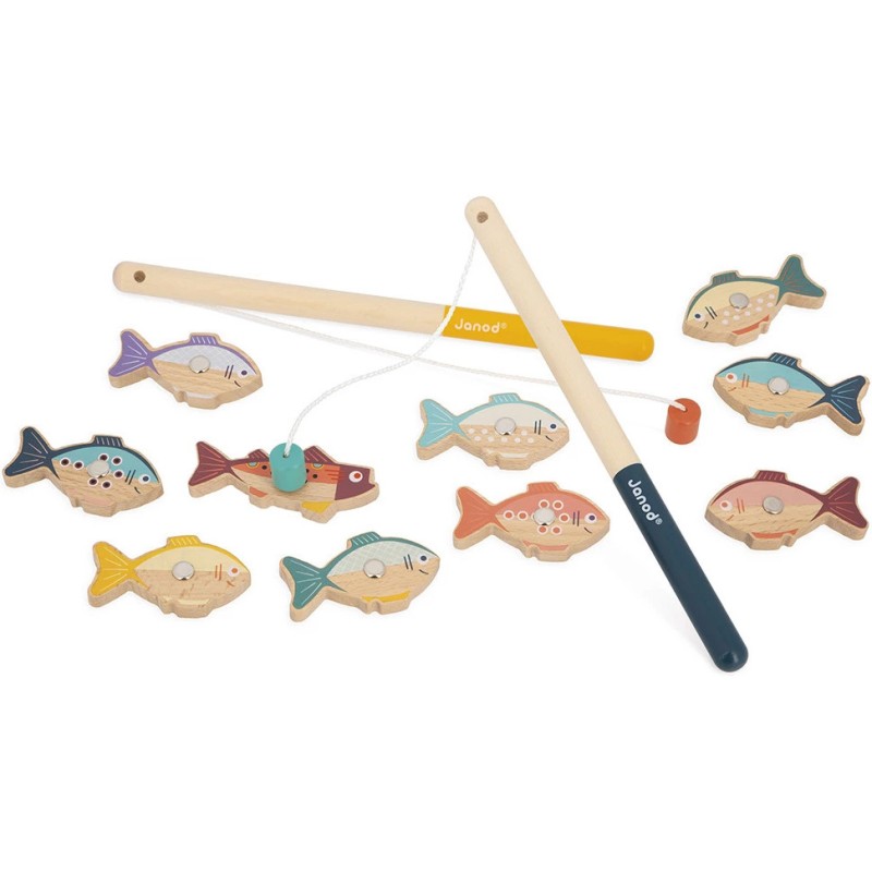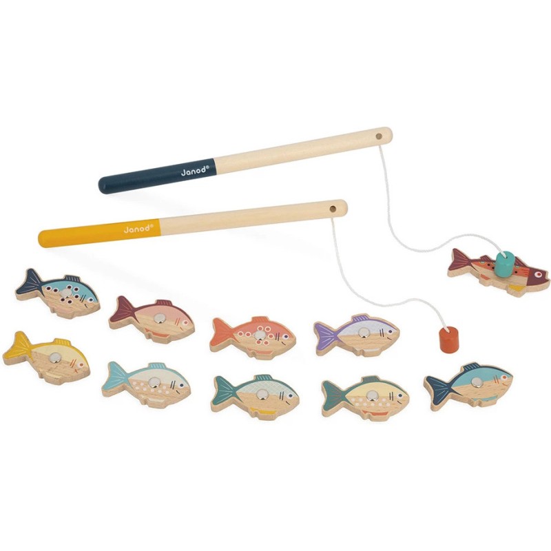 On dirait que ça mord à l'hameçon ! Ce jeu de pêche à la ligne en bois va amuser les tout-petits dès 2 ans ! À l'aide de deux cannes en bois équipées d'un aimant, les enfants attrapent les jolis poissons colorés. C'est à celui qui en attrapera le plus ! Chaque poisson possède une pastille métallique pour faciliter la prise.