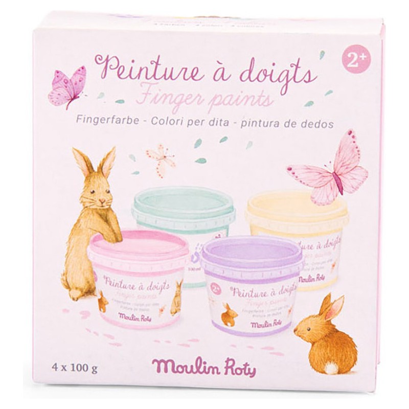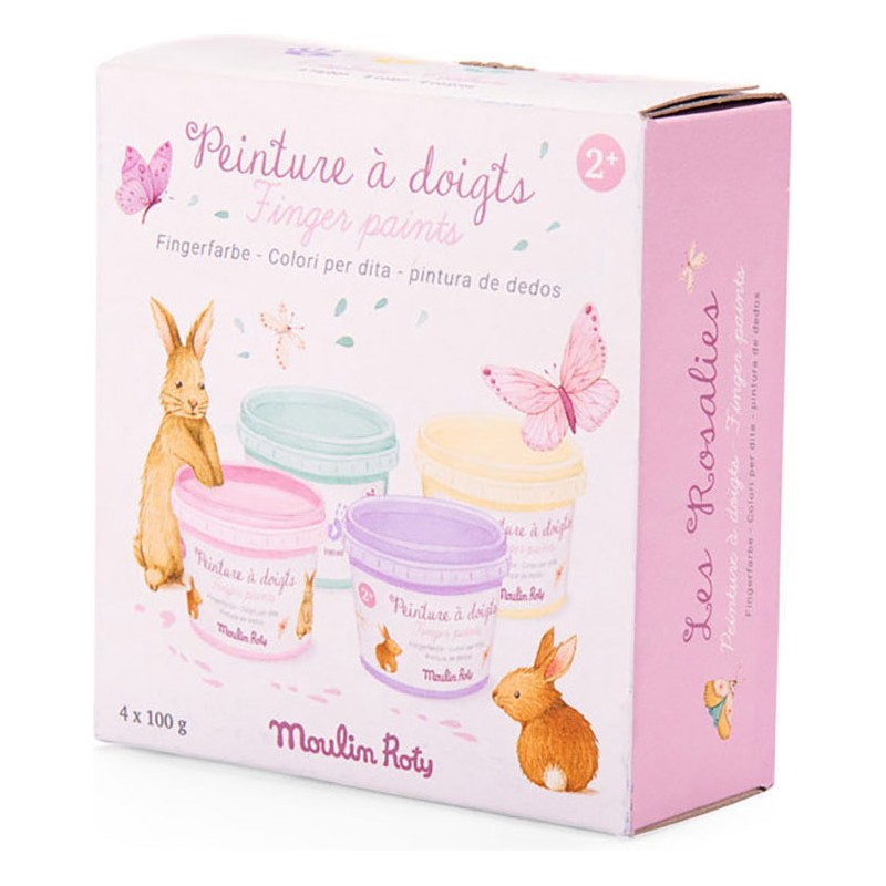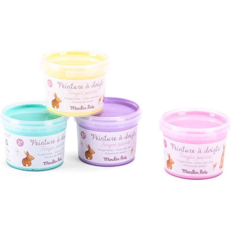 4 pots de peinture au doigt aux couleurs pastel pour libérer la créativité des petits ! Trempez un doigt dans la peinture, appliquez la couleur sur une feuille de papier et commencez à créer une image. Peinture gouache hydrosoluble, testée dermatologiquement. Lavable à l'eau. Contenu : 4x100g (menthe, jaune, rose, violet).