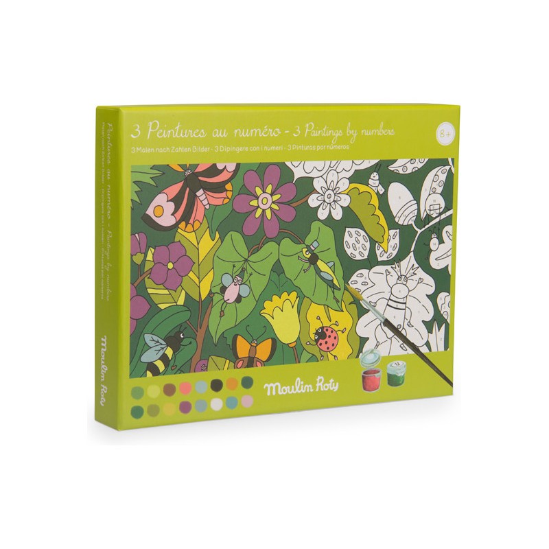 Laisse-toi guider par les numéros dans chaque case qui t'indique la couleur de peinture à utiliser et regarde ton image prendre vie à chaque ajout de couleur. Contient 3 images (22x18cm) à peindre sur le thème du jardin et leur modèle,2 pinceaux et 16 pots.