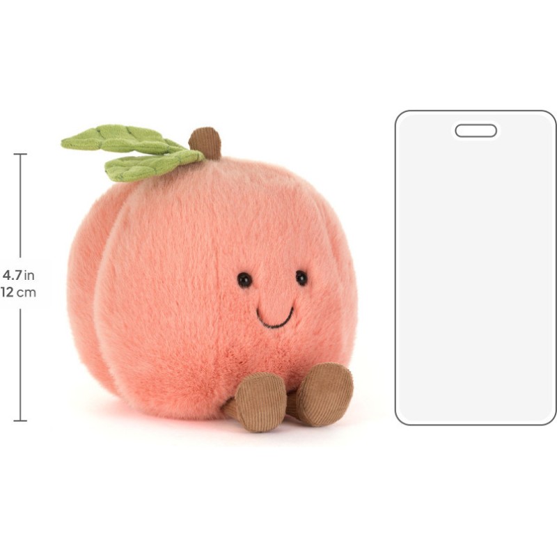 Ne vous fiez pas à ses joues rosées. Amuseables Peach, fine spécialiste de fruits, est la critique gastronomique la plus redoutable que Jellycat ait connu. Du crumble au chutney, elle a tout goûté et tout jugé, consignant soigneusement ses notes dans son carnet de velours. Opiniâtre, elle s’est un jour lancée dans un débat, courtois mais passionné, avec Amuseables Banana sur la suprématie de la confiture face à la gelée.
