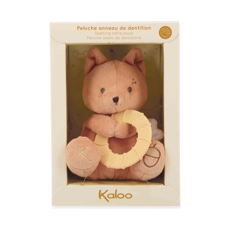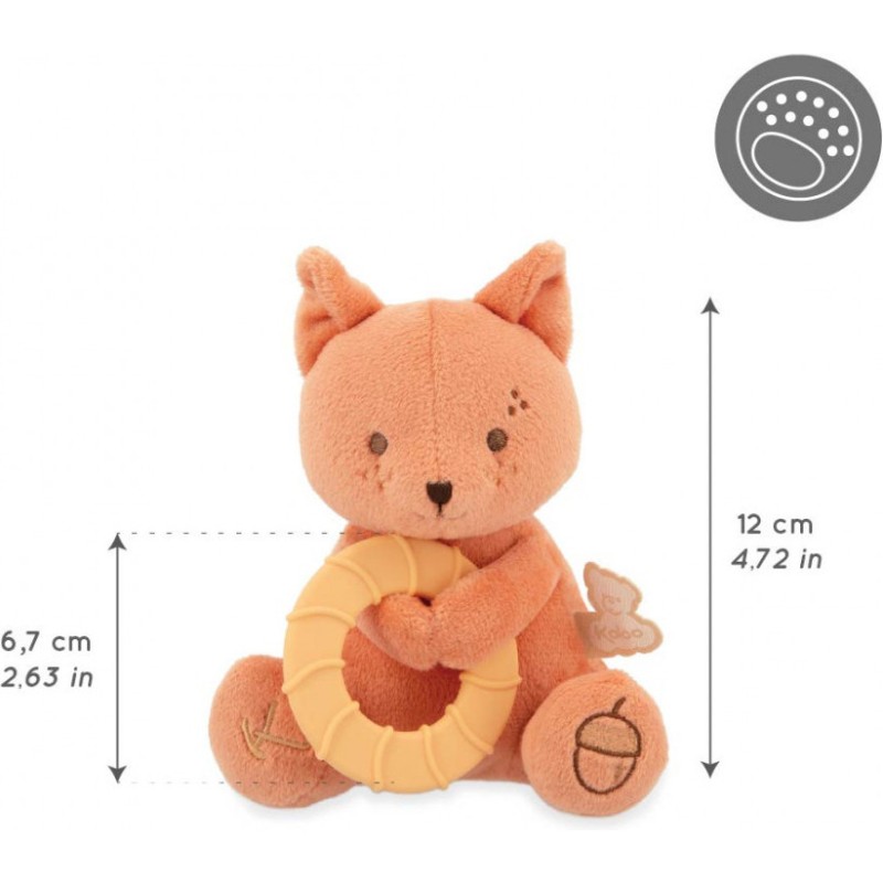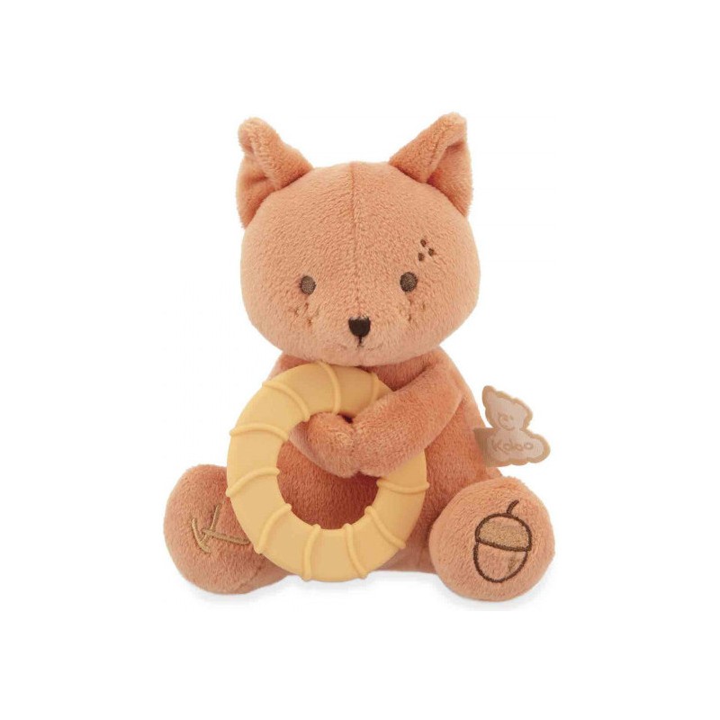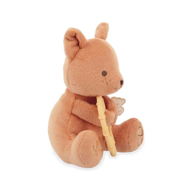 La peluche à offrir dès les premières poussées dentaires ! Accompagnée d'un anneau de dentition, elle apporte à la fois réconfort et apaisement à bébé. Entre ses pattes, cet adorable écureuil serre un anneau en silicone doté de reliefs conçu pour masser en douceur les gencives douloureuses de bébé. L'anneau mesure 12 cm et s'attrape facilement par les petites mains. Lorsque les dents travaillent, bébé peut mettre à sa bouche l'anneau à l'infini et faire de gros câlins à l'écureuil pour y trouver du réconfort. En plus de sa frimousse amicale, l'écureuil est en micro-velours, enveloppant bébé dans une incroyable douceur. Ce petit écureuil devient vite un repère affectif pour bébé, l’aidant à traverser les moments d’inconfort. C'est bien connu, l'écureuil adore les noisettes ! C'est pourquoi sa patte est habillée d’une jolie broderie en forme de ce fruit, idéale pour stimuler le toucher de bébé. Confectionnée avec soin, cette peluche est composée avec au moins 70% de matières recyclées, y compris son rembourrage en polyester recyclé. Adaptée aux petits dès 3 mois, elle peut être lavée en machine à 30° en cycle délicat, pour un entretien facile. Elle fait partie de la collection Grignoti : une gamme conçue pour soulager les maux liés aux poussées dentaires de bébé grâce à des compagnons grignoteurs qui invitent à mâchouiller et mordiller, tout en développant l'éveil gustatif.