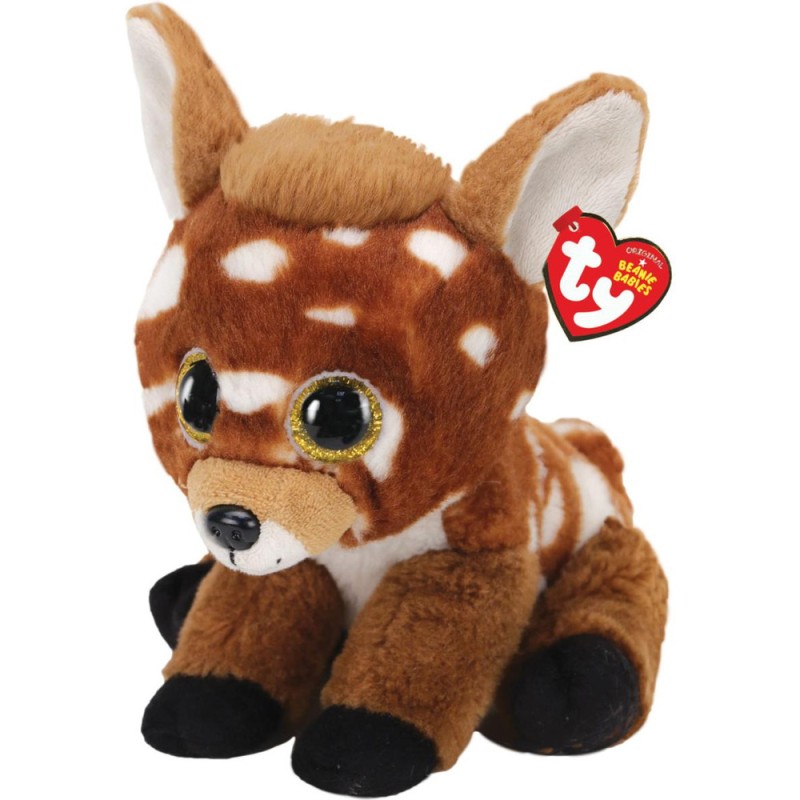 Une adorable peluche Beanie Babies à collectionner ! Buckley est un renne marron de 23 cm avec une fourrure extrêmement douce, de gros yeux pailletés qui lui donnent un look unique. Buckley n'attend qu'à être adopté ! Comme tous les Beanie Babies, Buckley possède une date d'anniversaire : le 2 Mai. Découvre la gamme complète de Beanie Babies, toutes les tailles différentes : 15 cm, 23 cm, 40 cm et porte-clés ! Collectionne tous ces charmants petits compagnons. Pour les enfants de plus de 3 ans.