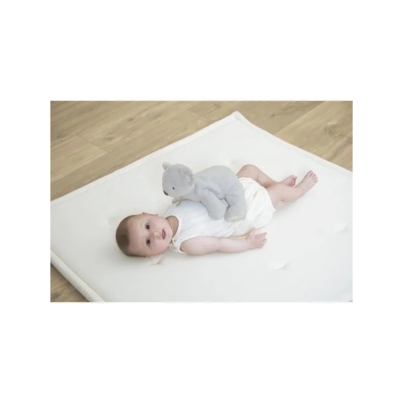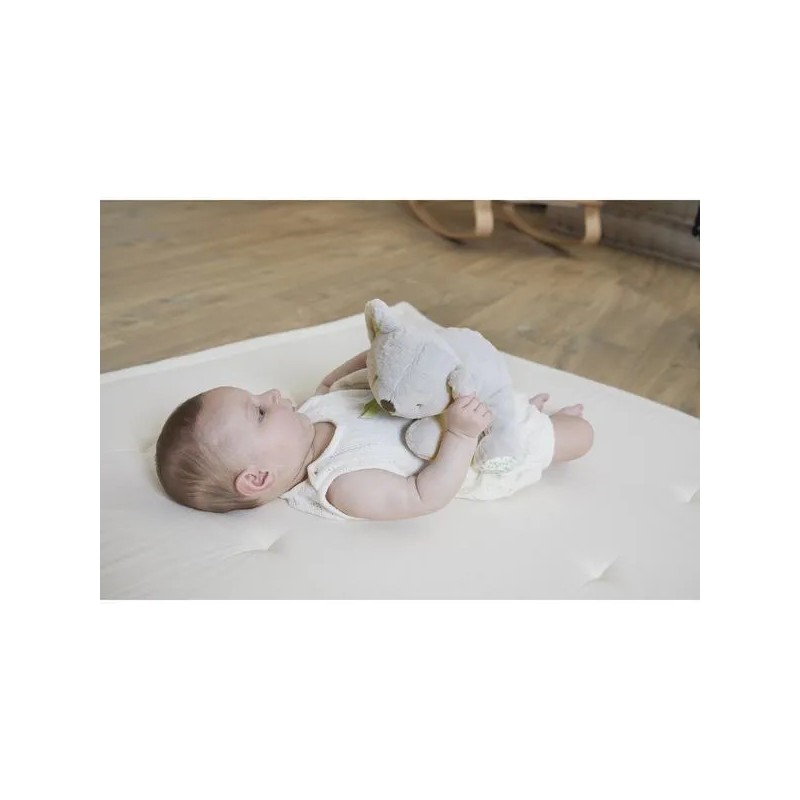 Voici une peluche lestée qui saura apporter réconfort et apaisement aux tout-petits dès 3 mois juste avant de dormir ! Ce koala de 28 cm, au pelage d’une extrême douceur, rassure bébé en lui offrant une sensation d’enveloppement réconfortante grâce à son poids d'environ 320g, pensé pour être adapté et sécurisé. Cette présence douce et constante réduit l'anxiété et l'agitation avant le sommeil. La peluche renforce également le rituel du coucher car bébé associe le koala à un moment calme et rassurant, ce qui aide à instaurer une routine. Ce repère est essentiel pour que le moment du coucher devienne un véritable moment de sérénité. Grand amateur de repos, le koala passe ses journées à dormir dans les branches des eucalyptus. Cette peluche s’inspire de cette tranquillité pour offrir à bébé un compagnon tendre et apaisant. En plus de son incroyable fourrure tout douce, les pattes du koala sont ornées de motifs végétaux qui rappellent la forêt d’eucalyptus où il vit, plongeant bébé dans un univers naturel et apaisant. Un petit ruban vert, délicatement noué autour de son cou, invite bébé à l’attraper pour éveiller ses sens. Les formes arrondies du koala le rendent facile à saisir, parfait pour les petites mains en quête de câlins. Lavable en machine à 30°, cette peluche lestée est composée avec au moins 90% de matières recyclées. Elle appartient à la collection Petit Songe : une gamme autour du sommeil pensée pour créer un univers doux et apaisant dans la chambre, avec des compagnons réconfortants qui accompagnent bébé et ses parents dans le rituel du coucher.