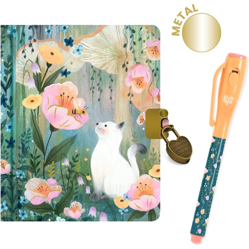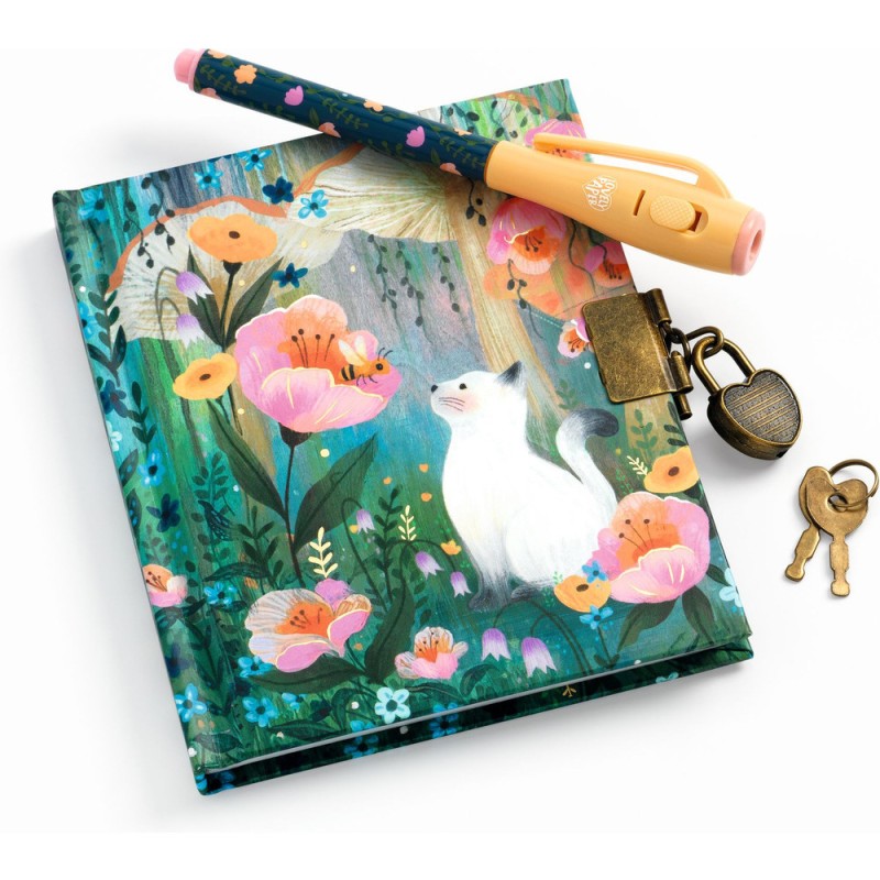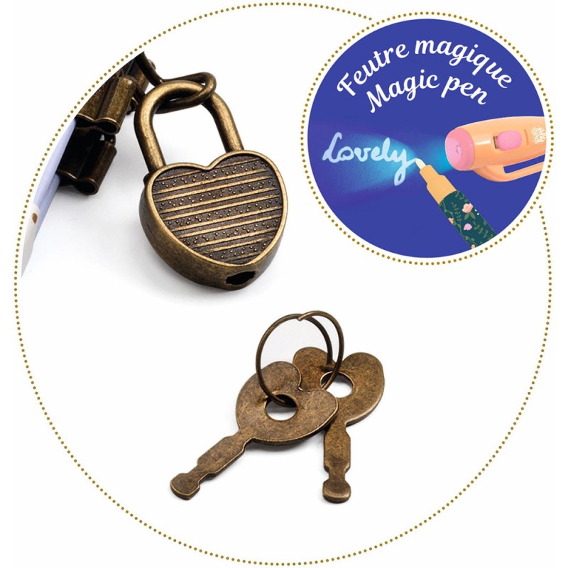 Un petit carnet secret avec un feutre à encre invisible pour écrire et dessiner tous ses secrets ! Il suffit de passer la lampe à Uv dessus pour que tous les secrets soient révélés. Ce carnet est composé de 88 pages lignées, toutes illustrées de petits dessins. Il possède un cadenas en forme de cœur et deux clés pour garder toutes ses histoires à l'abri des regards indiscrets.Lovely Paper by Djeco, une collection de papeterie raffinée et délicate aux jolies illustrations, pour illuminer le quotidien des grands et des petits.
