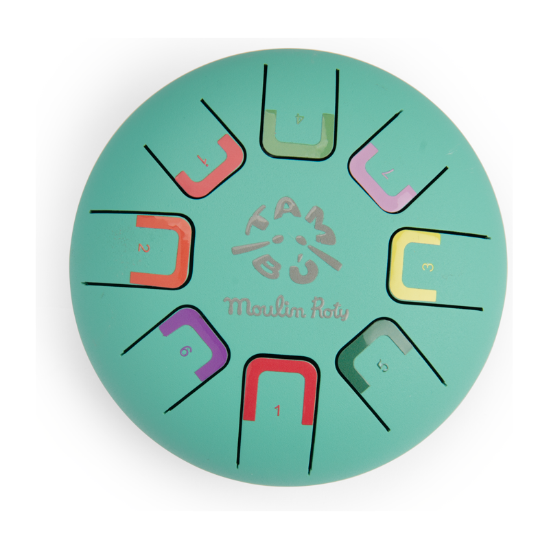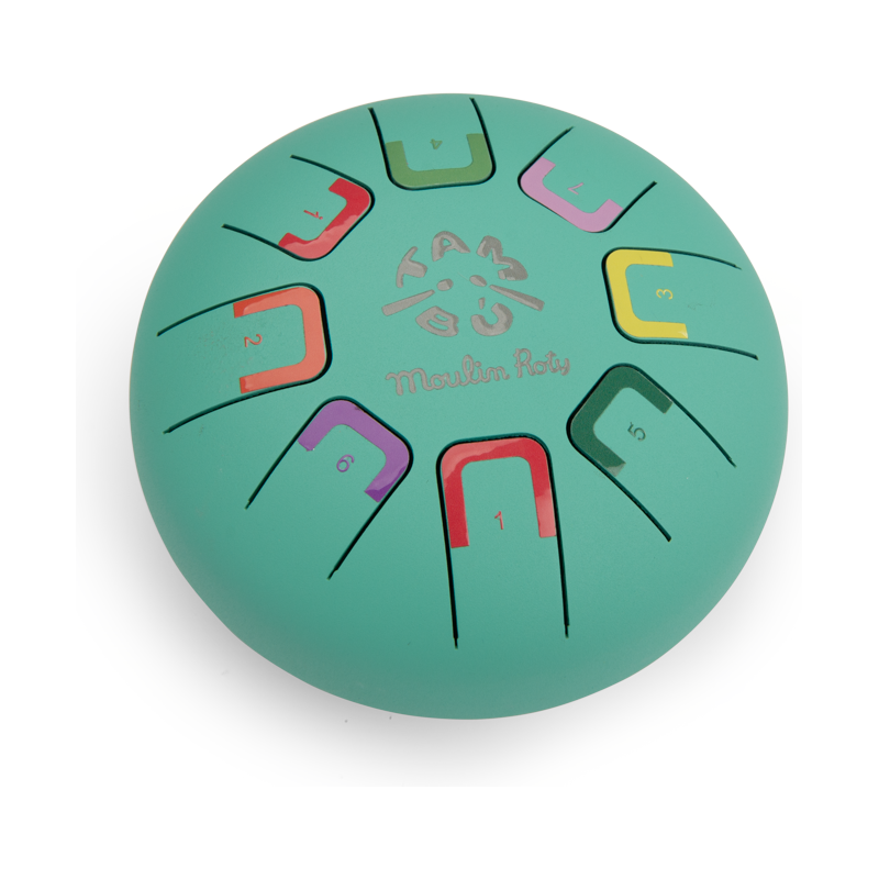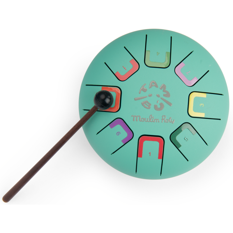 Le petit tambour à languettes est l'instument idéal pour initier les enfants aux percussions. Les 8 notes peuvent être jouées de plusieurs façons. A l'aide des baguettes, des mains ou des pics à doigts.