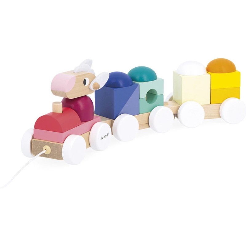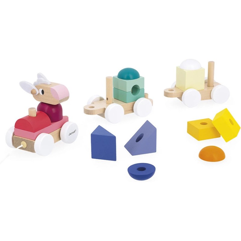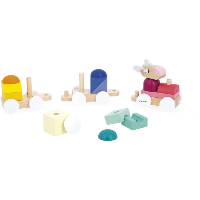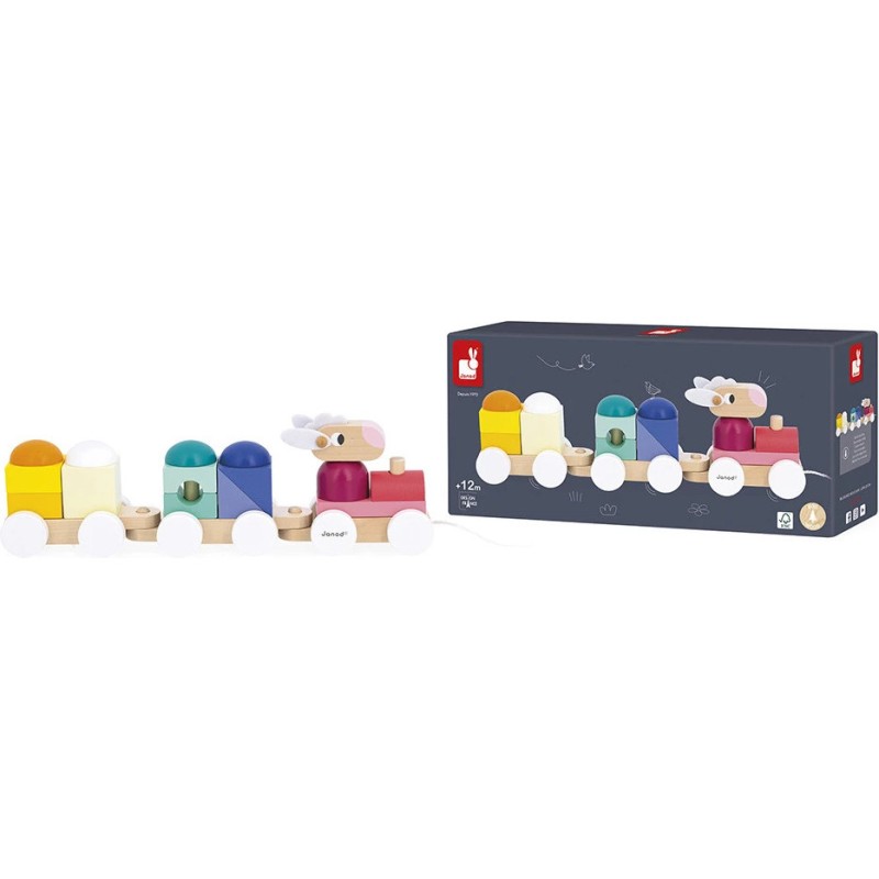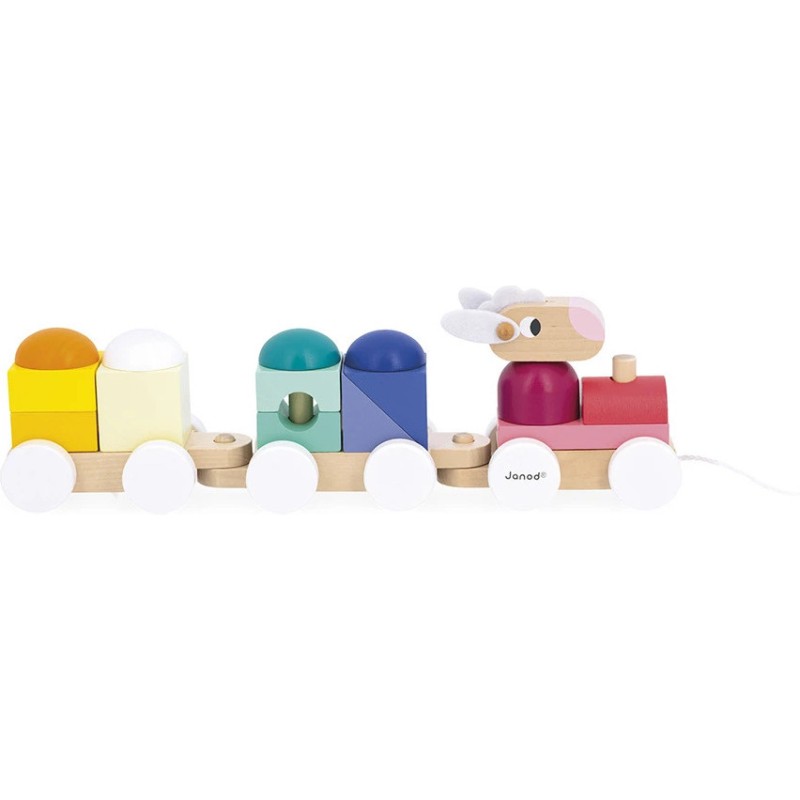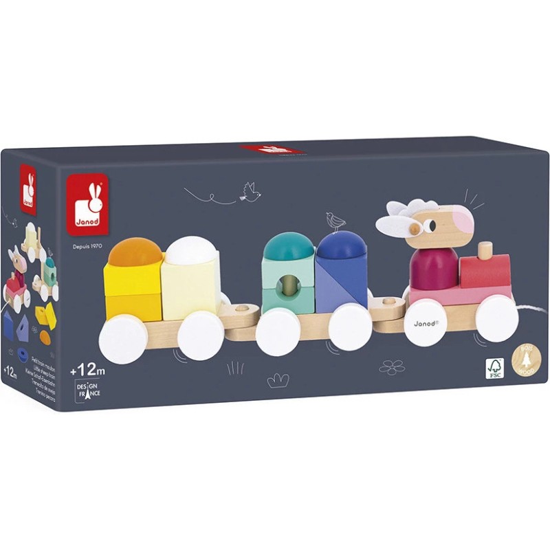 Tchou, tchou ! Le petit train est sur le point de partir, avec aux commandes un adorable mouton ! Les enfants dès 1 an vont adorer promener ce jouet de premier âge. En plus d'être un jouet à tirer, ce train est un jeu de construction ! Grâce aux 15 blocs en bois à placer sur les 2 wagons, les tout-petits apprennent les formes et les couleurs en s'amusant.