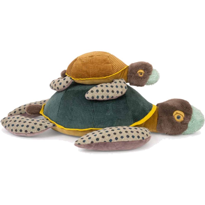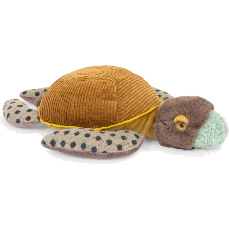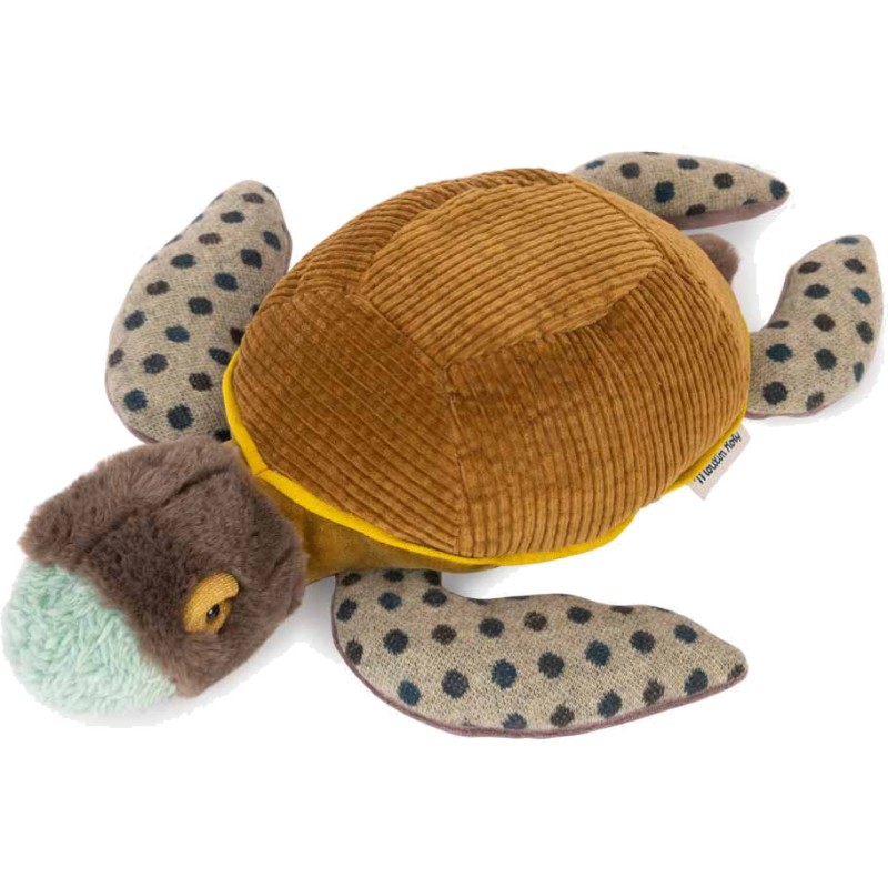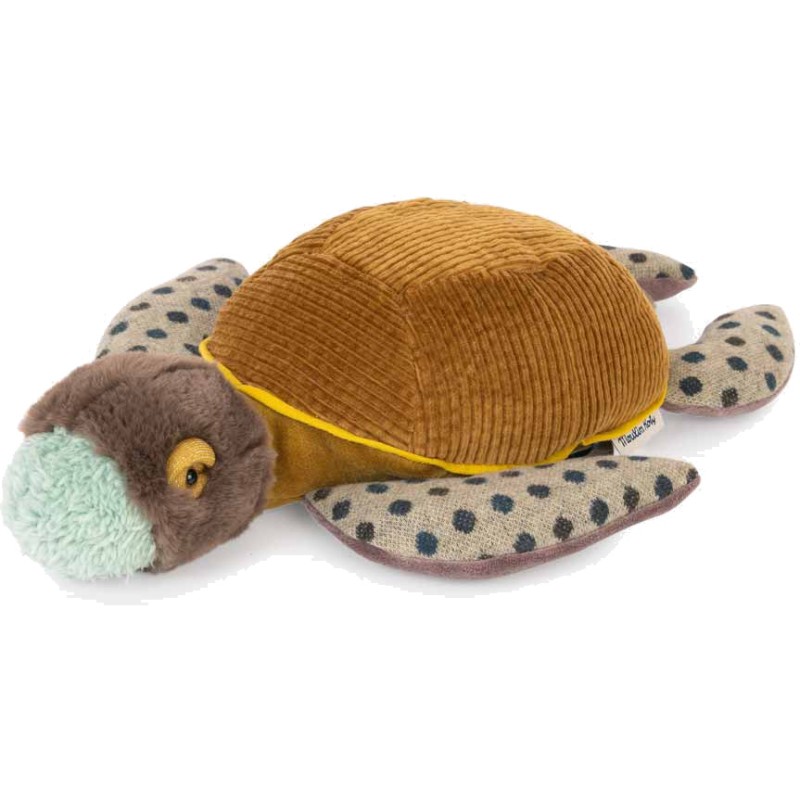 Petite tortue et sa carapace en velours épais, remue ses nageoires à pois pour la balade quotidienne avec grande tortue. Ses yeux bleu océan, cernés d'une paupière jaune pailletée, nous embarquent dans son tendre univers…