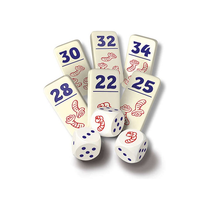 Lancez les 8 dés originaux, choisissez une valeur de dés à mettre de côté, puis faites le pari de relancer ou pas. Vous pouvez relancer les dés restants autant de fois que vous le souhaitez, à condition de toujours pouvoir retenir une valeur de dés différente. Si vous êtes dans l'incapacité de le faire alors vous devrez rendre un de vos précieux Pickomino et passer votre tour ! Lorsque votre tour est fini, faites l’addition pour savoir quel Pickomino prendre au centre de la table ou même dans la main de vos adversaires ! Allez-vous jouer la sécurité et récupérer un Pickomino de faible valeur ou êtes-vous un flambeur ?