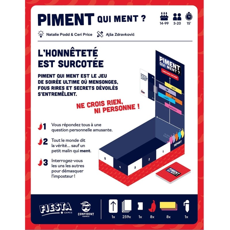 Piment qui ment est le jeu de soirée ultime : mensonges, fous rires et secrets dévoilés s'entremêlent !
