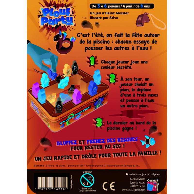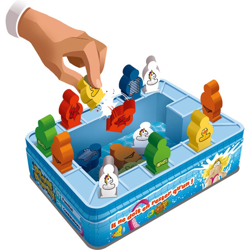 Rusez comme un pingouin pour ne pas dévoiler trop tôt votre couleur secrète et piégez vos adversaires comme une murène ! C’est festif, c’est gentiment méchant, et bien entendu, le dernier au bord de la piscine remporte la palme du joueur le plus bronzé !