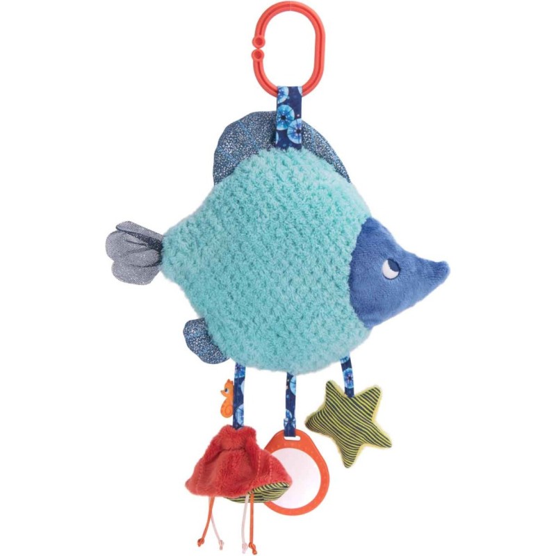 Au fond de la mer se trouve un poisson extraordinaire aux couleurs et textures étonnantes, rempli d'activités : grelot, papier crissant, étiquettes à explorer… De belles surprises pour bébé à découvrir du bout de ses petits doigts.
