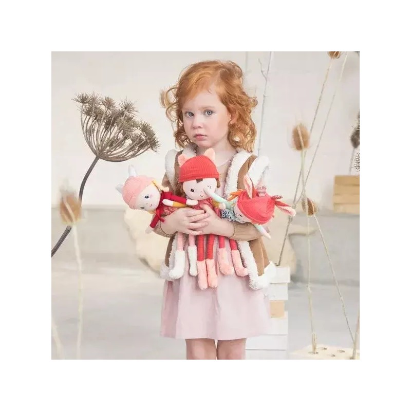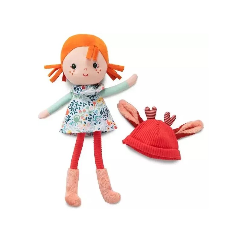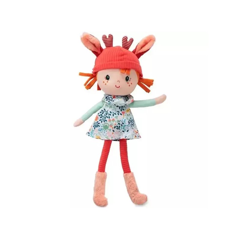 Stella n’est plus le petit faon que l’on connait, elle s’est transformée en une adorable petite fille rousse avec sa robe fleurie et son bonnet aux oreilles et bois de faon. Cette poupée câline deviendra vite l’inséparable amie de son futur petit propriétaire.