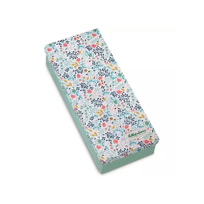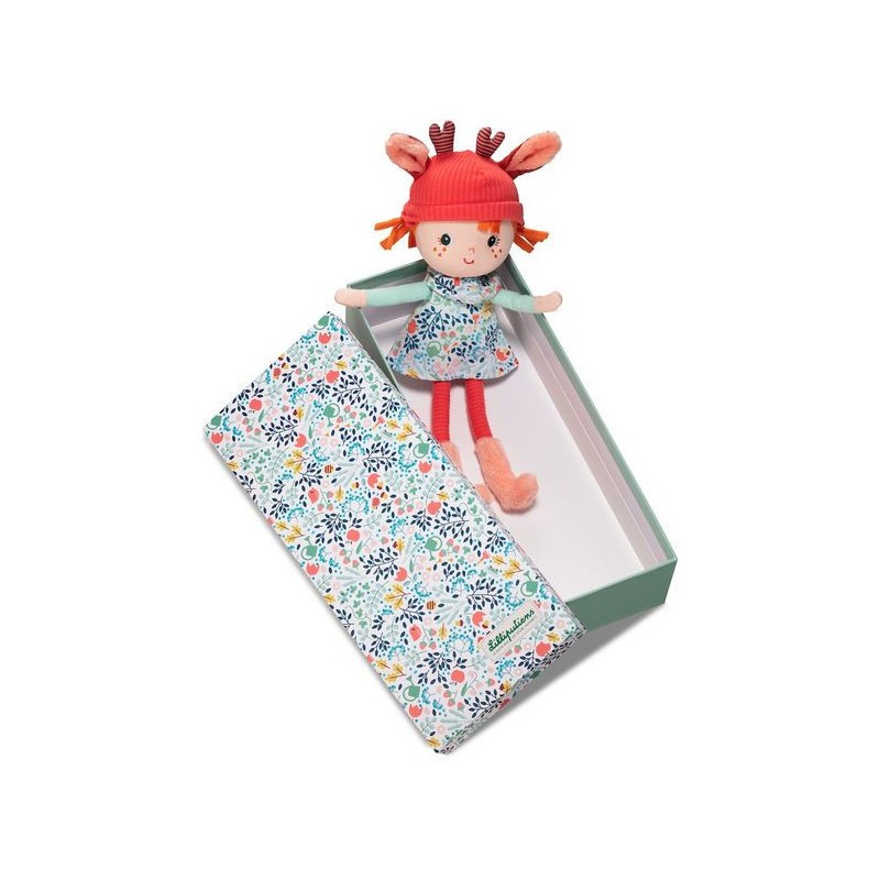 Stella est accompagnée d’une boite cadeau aux motifs fleuris qui décorera à merveille la chambre de votre bout de chou et peut également servir de boite de rangement.