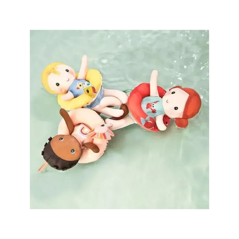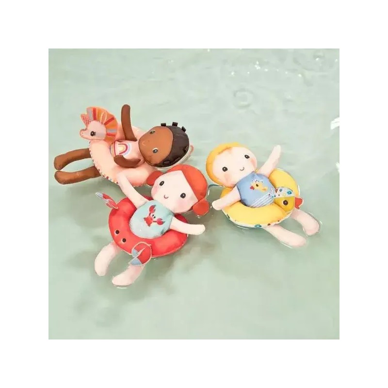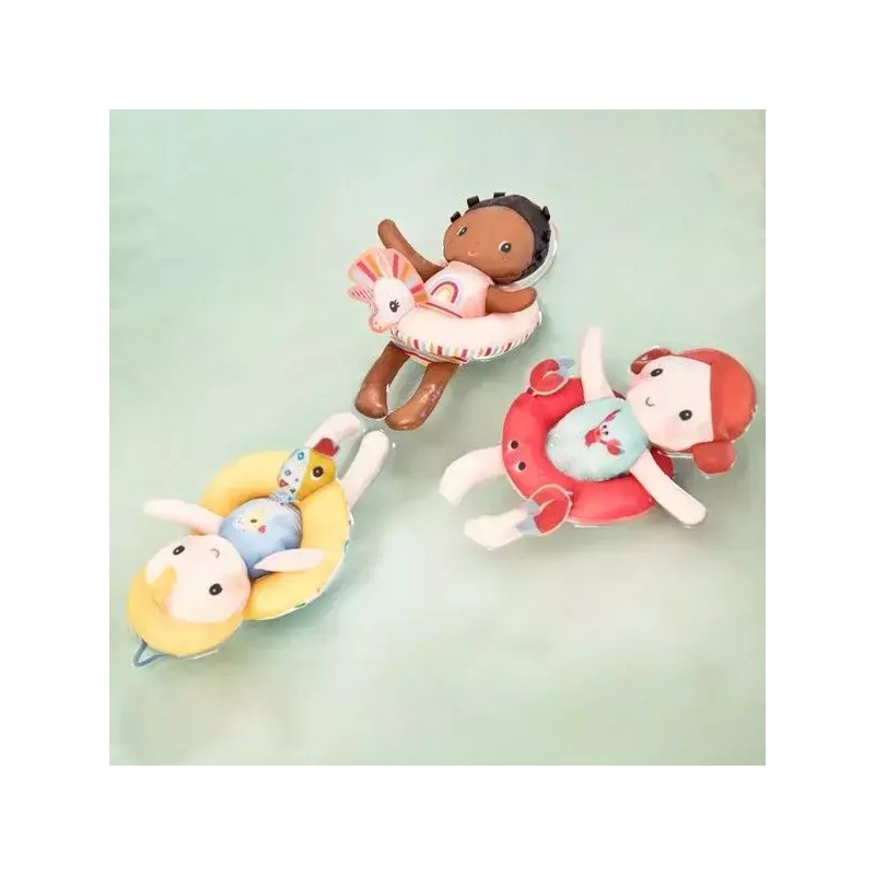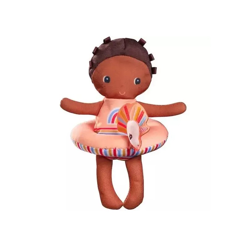 Cette poupée en polyester de 18 cm rendra l’heure du bain encore plus amusante ! Autour de sa taille se trouve une bouée multicolore à tête de licorne.