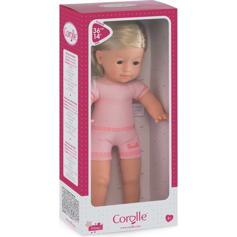 La poupée à habiller ma Corolle Paloma est une poupée à habiller de 36 cm au corps souple "effet" sous-vêtement avec de longs cheveux blonds faciles à coiffer. Paloma a la peau blanche et les yeux bleus.