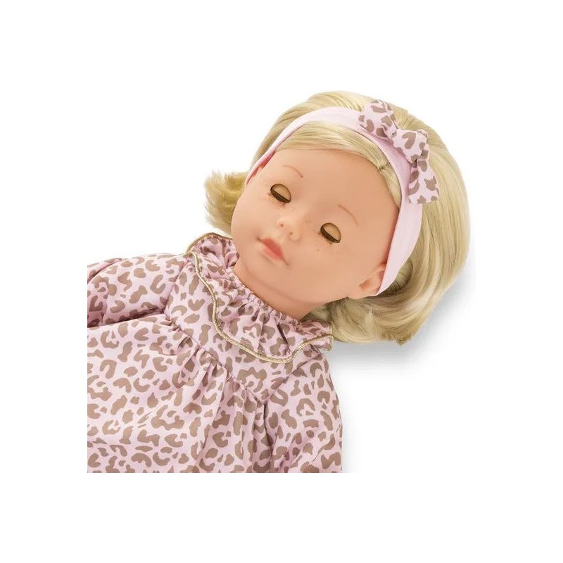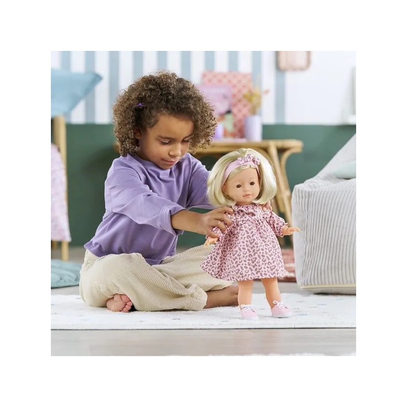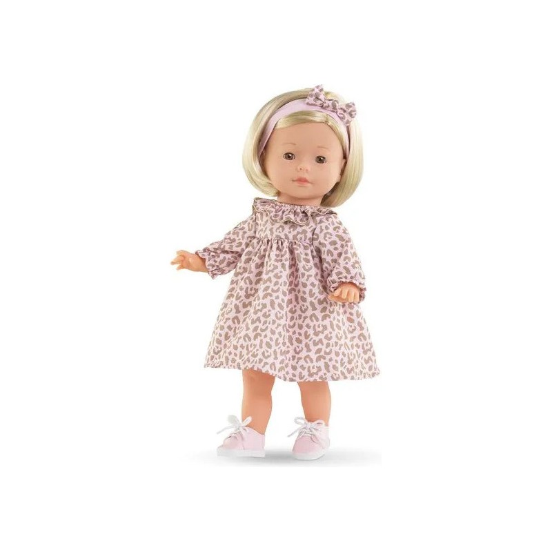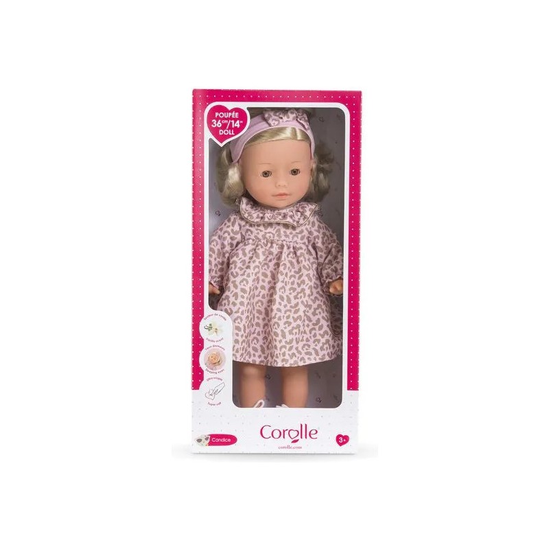 Ils diffusent la délicate senteur de vanille, véritable signature Corolle. Cette poupée réaliste, ferme ses yeux lorsqu'on la couche sur le dos. Candice porte une jolie robe rose à motifs léopard et est coiffée d'un joli bandeau rose orné d'un nœud assorti à sa tenue. Pour parfaire son style, elle porte une paire de chaussures roses argentées.