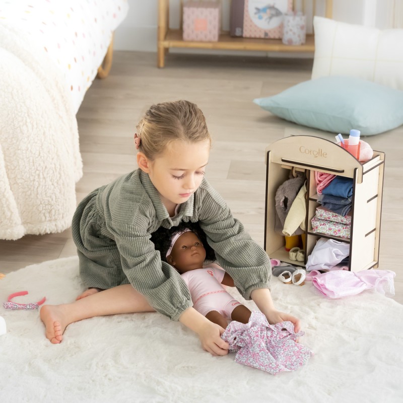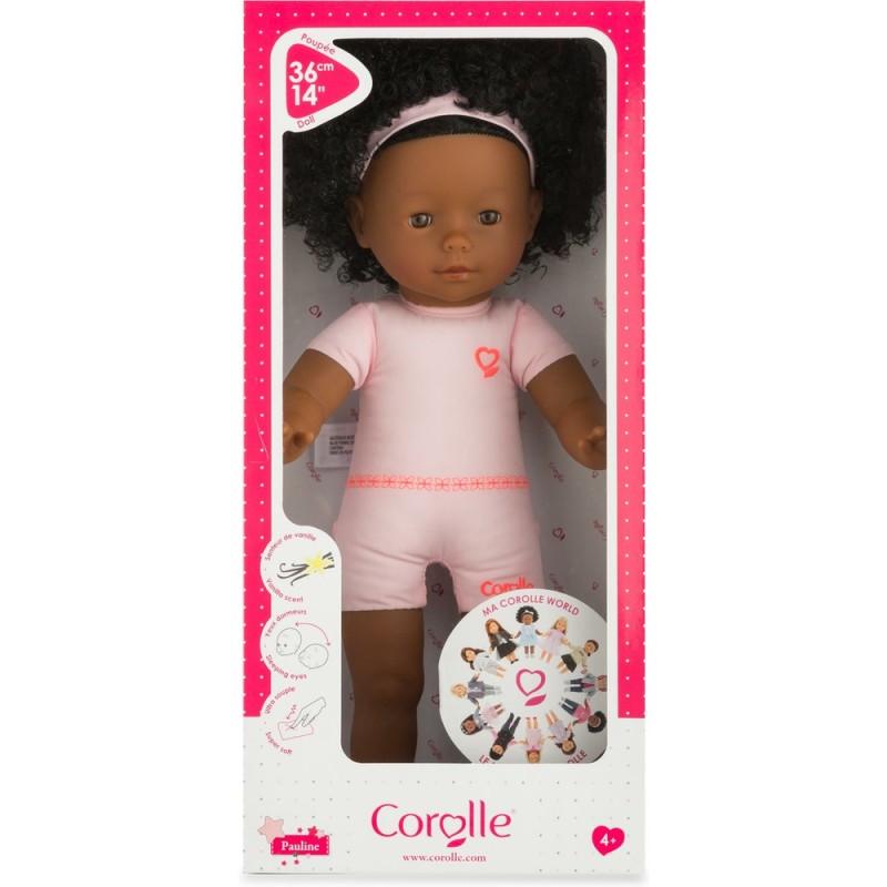 La Poupée à habiller ma Corolle Pauline est une poupée à la peau noire de 36 cm au corps souple "effet" sous-vêtement avec des cheveux frisés à coiffer. Elle a les yeux marron. Son visage, ses bras et ses jambes, à la délicate senteur de vanille, sont en vinyle doux au toucher. Avec ses yeux dormeurs, elle dort quand on la couche sur le dos. La poupée Pauline se personnalise à l'envi avec un mix and match de plus de 100 références de vêtements et accessoires. ma Corolle : Ma poupée, Mes histoires ! Vêtements et accessoires vendus séparément. Dès 3 ans.