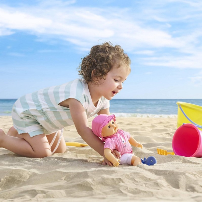 Le petit poupon Bébé Bain Océane a un corps souple, qui lui permet de prendre les mêmes positions qu'un vrai bébé. Il mesure 30 cm et est donc parfaitement adapté aux petits bras et mains de votre petit.