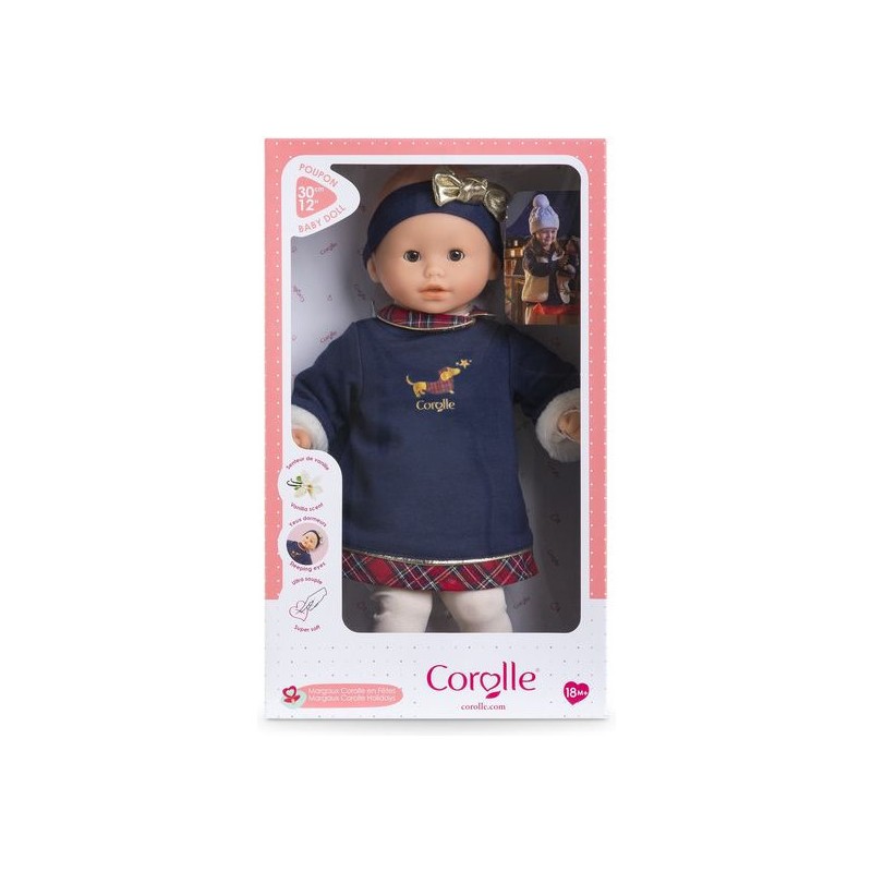Bébé Calin Margaux Corolle en Fêtes est le petit poupon de 30 cm parfait à offrir pour Noël.