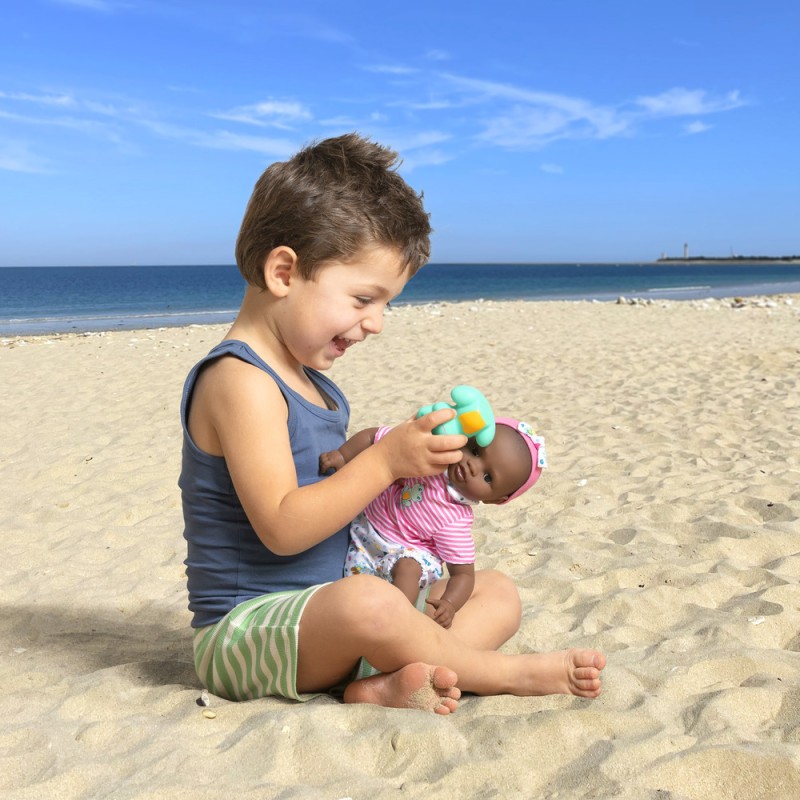 Ce baigneur possède bien sûr tous les attributs d'un poupon Corolle : son visage, ses bras et ses jambes sont en vinyle doux au toucher, et possèdent une délicate senteur de vanille, réconfortante pour les enfants.