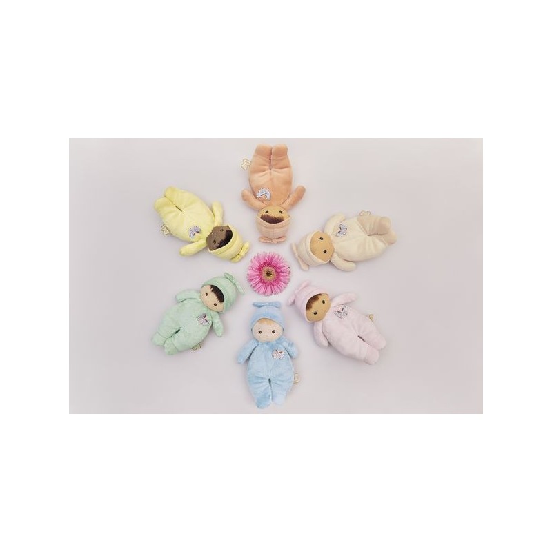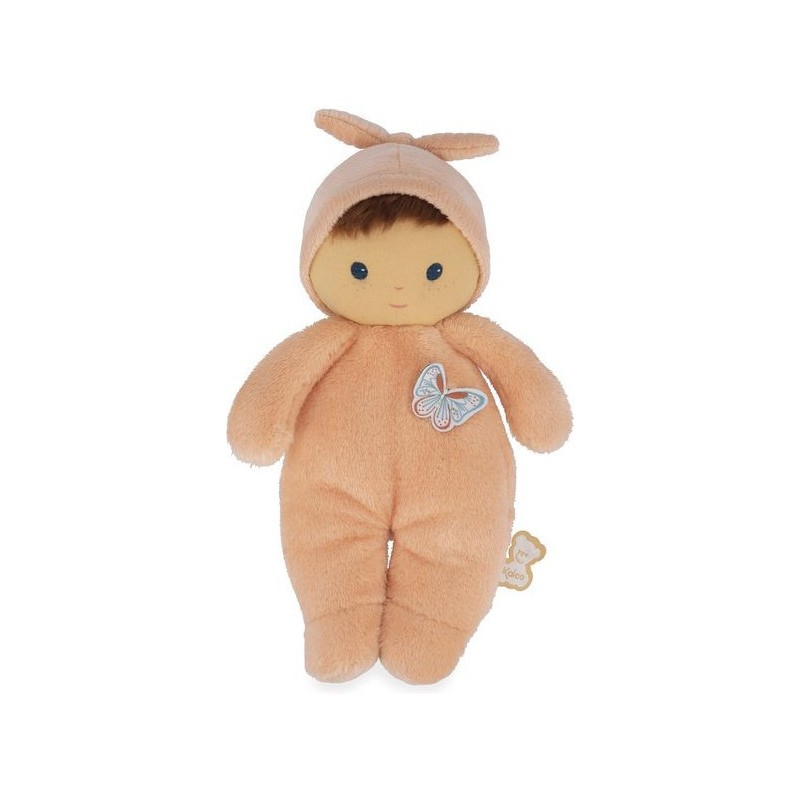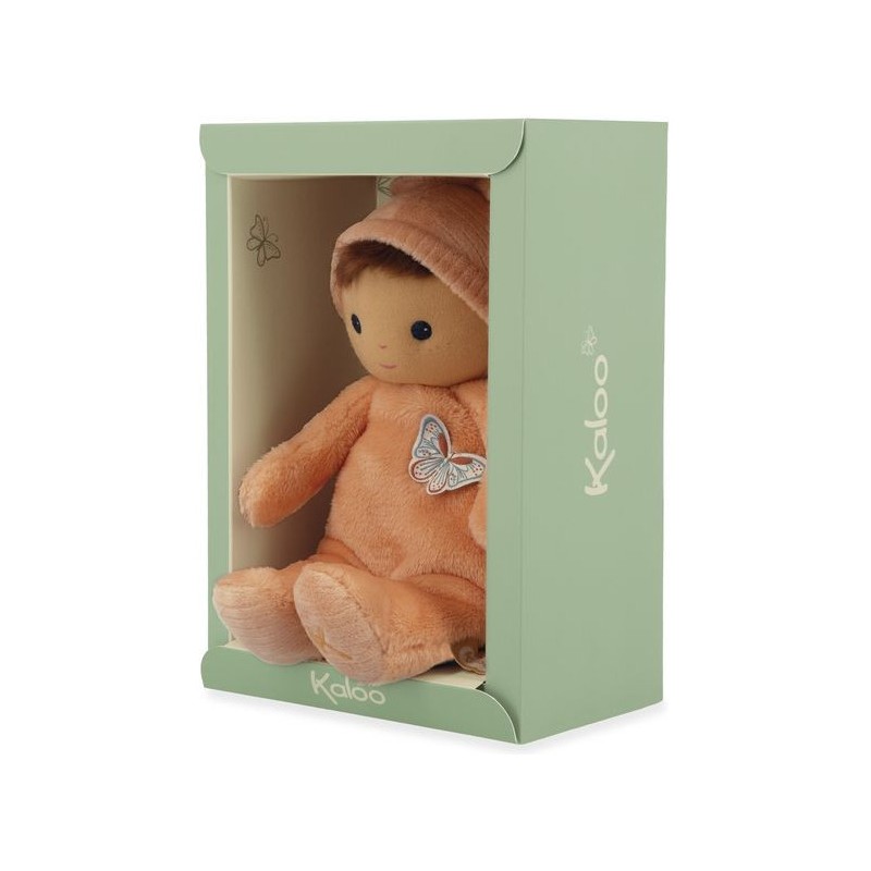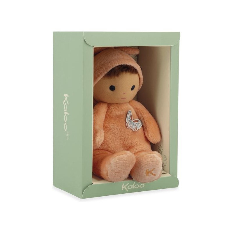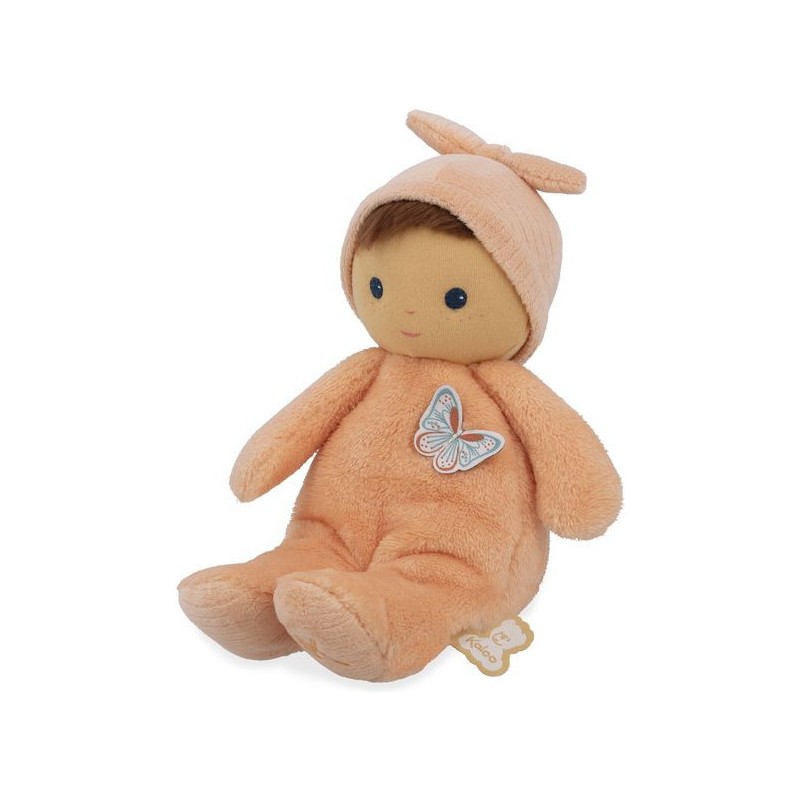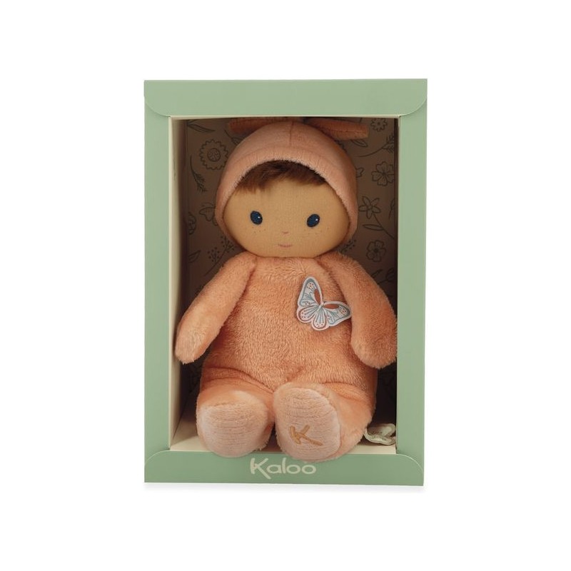 Offrez Bébé Zinnia, un poupon en tissu charmant et plein de douceur, idéale comme doudou ou première poupée pour les tout-petits. Ce délicat poupon châtain de 24 cm se distingue par son corps couleur pêche et ses yeux bleus lumineux. Composé de micro-velours tout doux, de velours côtelé, et rembourré avec du polyester recyclé, ce poupon en tissu offre une texture moelleuse qui invite aux meilleurs câlins. Inspiré par cette fleur vibrante qu’est le zinnia, il est le cadeau parfait pour exprimer l'amour et renforcer les liens d'amitié. La fleur de zinnia est appréciée pour sa capacité à prospérer et à fleurir dans diverses conditions, ce qui fait de ce poupon un symbole de résilience et d'épanouissement affectif entre l'enfant et ses proches. Le torse de cette petite poupée est orné d'un papillon délicat, rappelant la légèreté et la grâce des fleurs : un détail enchanteur qui fera chavirer tous les cœurs. L'étiquette en forme de papillon est une invitation ludique à développer la dextérité et la curiosité sensorielle de bébé. Chaque interaction avec Bébé Zinnia stimule les sens en douceur et encourage le développement tactile des jeunes enfants. Son adorable bonnet noué est un élément de plus à explorer. Fabriqué avec 90% de matériaux recyclés, ce premier poupon illustre notre engagement à réduire notre impact environnemental tout en assurant une qualité et une sécurité sans compromis. Lavable en machine à 30°, Bébé Zinnia est conçu pour résister aux aventures quotidiennes et rester un fidèle compagnon dès la naissance de bébé et au-delà. Bébé Zinnia n'est pas juste une petite peluche, c'est un premier ami, un gardien de souvenirs d'enfance et un symbole de la tendresse que vous pouvez offrir à bébé. Ce doudou rose est un cadeau de naissance empreint d'amour et de douceur, qui promet de devenir le compagnon chéri des tout-petits pour les années à venir.