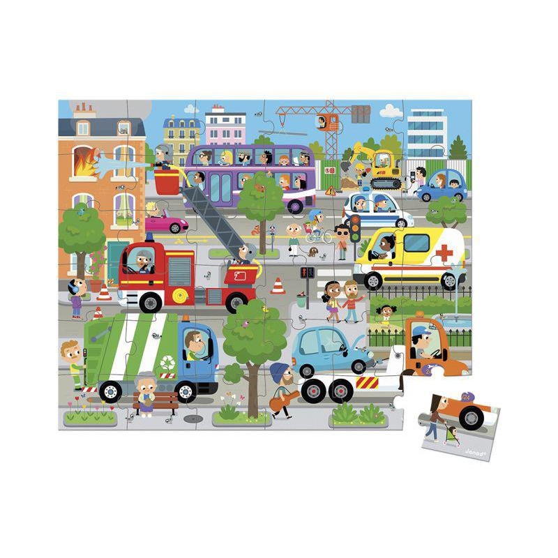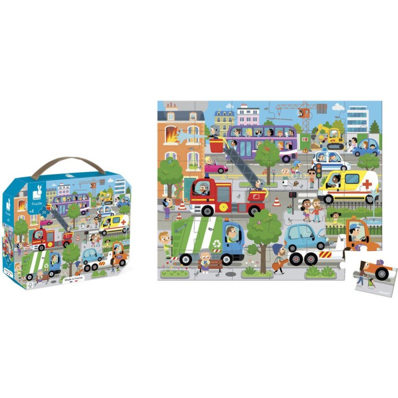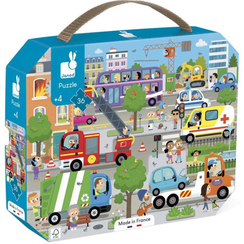 Avec ce puzzle en carton, votre enfant découvrira la ville et son animation ambiante tout en développant sa dextérité et sa concentration. Dans sa jolie valisette, ce puzzle sera facile à transporter grâce à sa poignée en tissu. Contient un poster servant de modèle. Nombre de pièces : 36. Fabriqué en France, Fsc mixte.