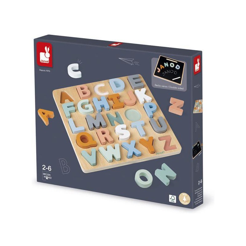 C’est l’heure de se familiariser avec l’alphabet ! Voici un jouet qui va amuser votre enfant tout en lui faisant découvrir les lettres de l'alphabet ! Ce jouet d'éveil en bois, accessible dès 2 ans, aux douces couleurs pastels, va permettre à votre enfant d'apprendre l'alphabet à son rythme grâce à plusieurs niveaux de jeu. Il pourra placer les lettres sur les couleurs correspondantes, reconnaitre les lettres puis les écrire grâce à l'ardoise au dos et à la craie fournie. Ce jouet en bois fait partie de la collection Sweet Cocoon, une gamme aux couleurs délicates, inspirée des tendances actuelles pour accompagner les premiers apprentissages de votre enfant tout en douceur ! Ce jeu contient 26 lettres en bois, 1 craie et une planche en bois recto/verso. ➡️ Comment bien choisir un jeu de construction et de manipulation pour son bébé : notre guide pour faire le bon choix.
