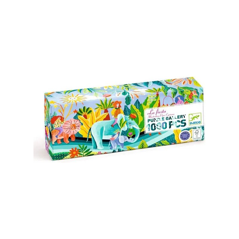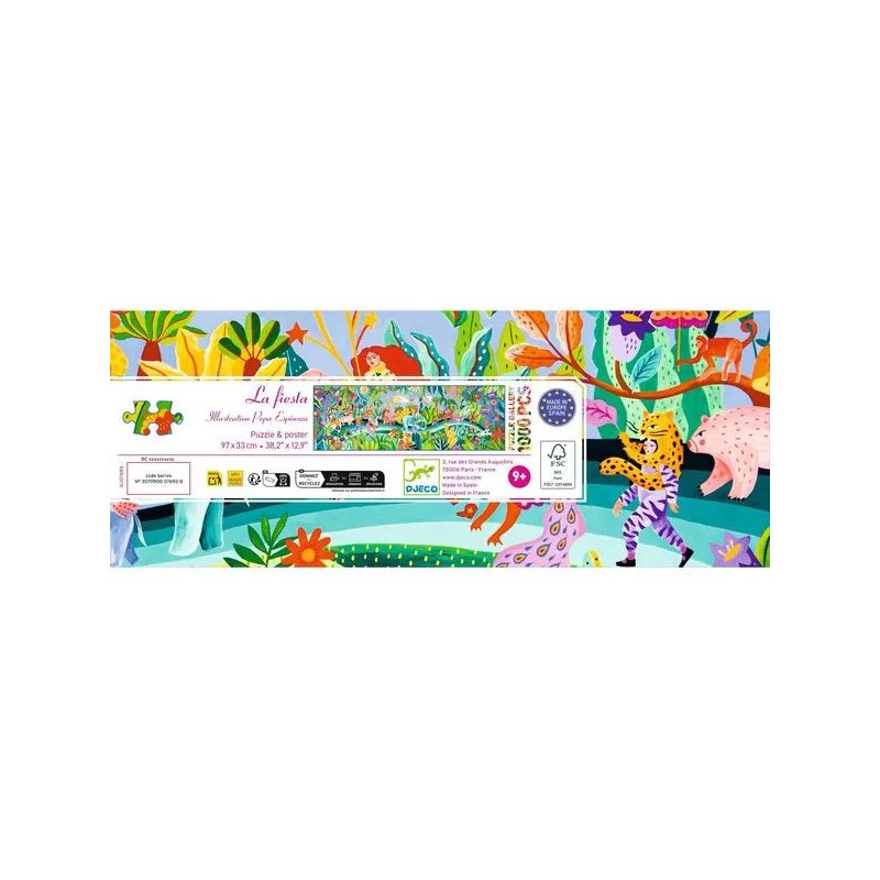 La Fiesta est un puzzle Gallery de 1000 pièces aux couleurs pétillantes qui vous plonge dans un défilé festif au cœur d’un décor végétal luxuriant, où chaque personnage incarne la joie et l’énergie d’un carnaval vibrant. Avec les puzzles Gallery, les illustrateurs laissent libre cours à leur créativité dans un format inédit tout en longueur. Une manière ludique et originale de découvrir l’art et les couleurs, pour petits et grands.