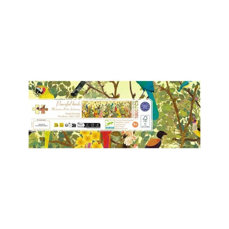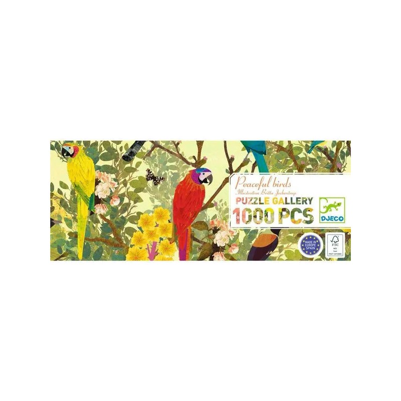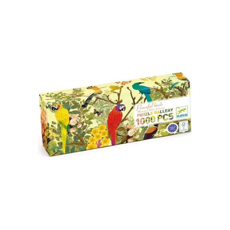 Peaceful birds est un puzzle Gallery de 1000 pièces qui vous amène à la rencontre de différents oiseaux. Avec les puzzles Gallery, les illustrateurs laissent libre cours à leur créativité dans un format inédit tout en longueur. Une manière ludique et originale de découvrir l’art et les couleurs, pour petits et grands.
