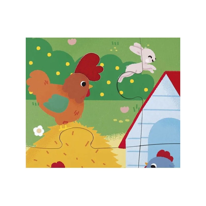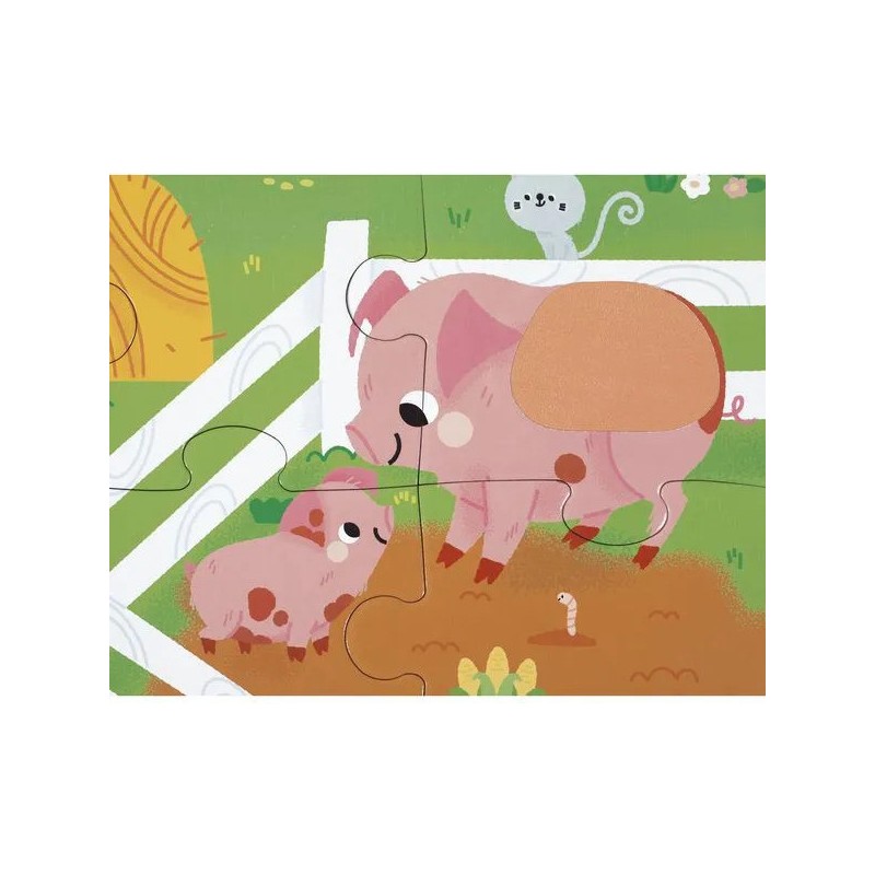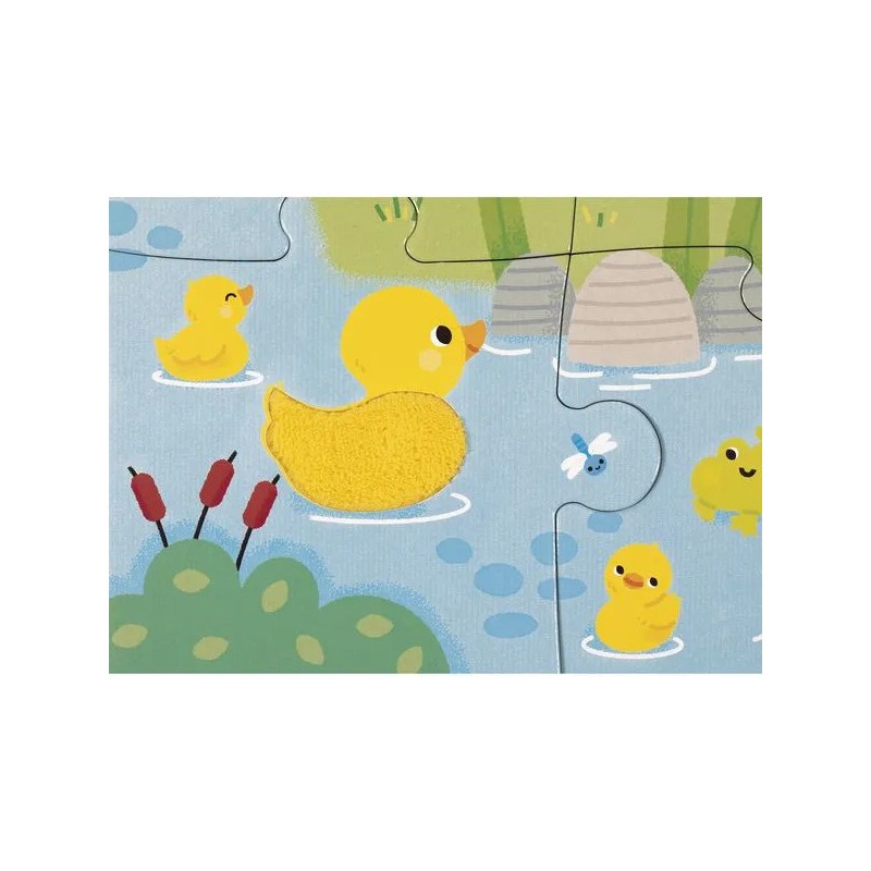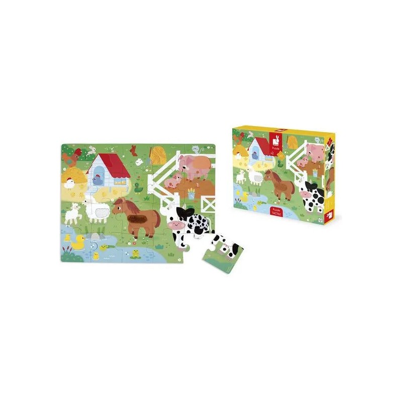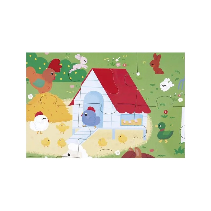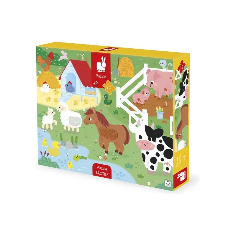 Les enfants vont adorer ce puzzle tactile géant sur le thème de la ferme. Après avoir réalisé un beau puzzle de 20 pièces, ils pourront découvrir différentes textures et matières un peu partout sur le puzzle et développeront ainsi leur sens du toucher et de l'observation. Pelage de vache et de mouton, queue du lapin, duvet du canard, crête du coq : de nombreuses imitations de textures sont à explorer du bout des doigts ! Livré avec un poster servant de modèle pour les petits débutants, ils pourront ensuite réaliser leur puzzle sans modèle lorsqu'ils gagneront en autonomie. Dans son format 65 x 50 cm, ce puzzle est composé de 20 pièces, dont 7 pièces texturées. Les puzzles sont fabriqués à partir de carton certifié Fsc™.