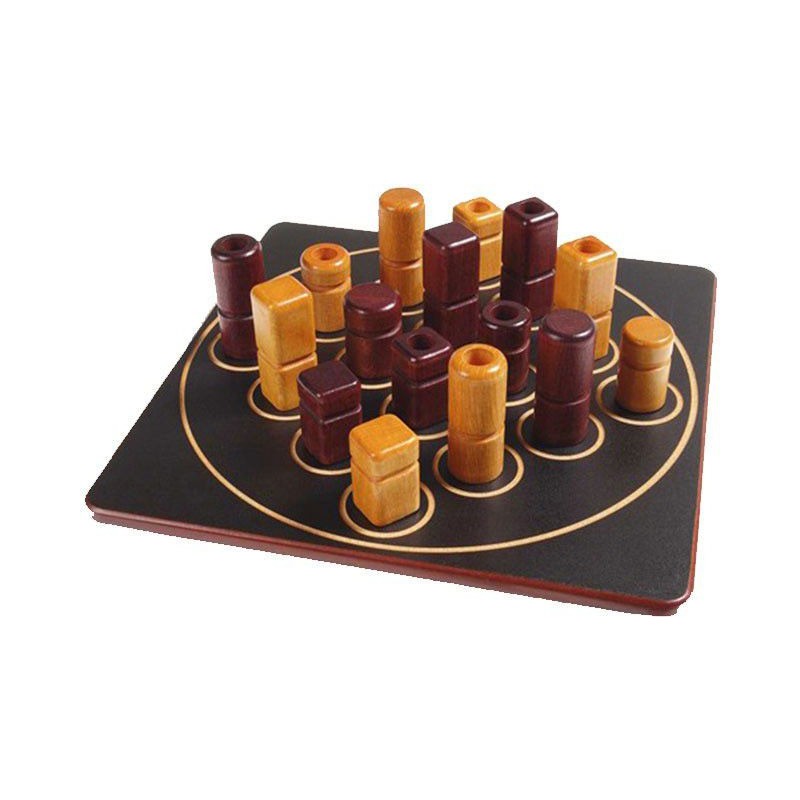 L'objectif : aligner 4 pièces ayant au moins un point commun entre elles. Mais ne croyez pas que vous jouerez celles que vous voudrez : c'est l'adversaire qui choisit pour vous ! Les seize pièces du jeu, toutes différentes, possèdent chacune 4 caractères distincts : haute ou basse, ronde ou carrée, claire ou foncée, pleine ou creuse. Chacun à son tour choisit et donne une pièce à l'adversaire, qui doit la jouer sur une case libre. Le gagnant est celui qui, avec une pièce reçue, crée un alignement de 4 pièces ayant au moins un caractère commun et annonce : «Quarto!».