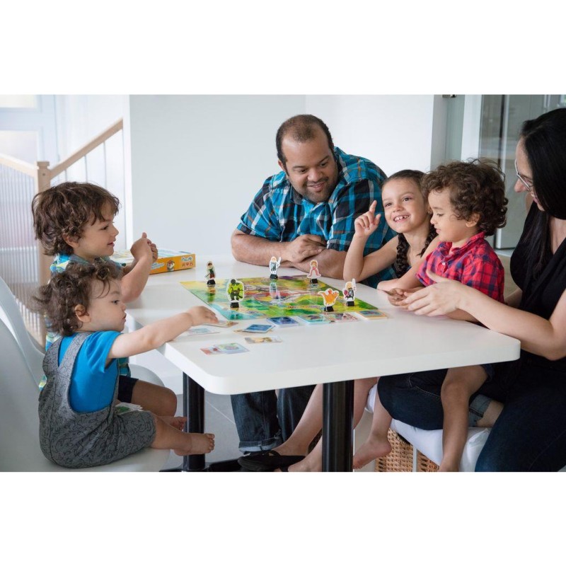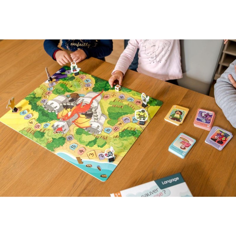 Jeu de parcours dans lequel les joueurs doivent répondre à des questions variées pour faire avancer les pions-personnages jusqu’au château dans le but de sauver la princesse. Les joueurs commencent par prédire lequel des pions-personnages arrivera le premier au château. À son tour, le joueur lance le dé pour savoir quel personnage il déplace d’une case. Il prend ensuite une carte-question correspondant à la couleur de la case sur laquelle le pion se trouve après le déplacement. L’adulte lit la question au joueur et celui-ci tente d’y répondre. Le jeu se termine lorsqu’un pion-personnage atteint le château et sauve la princesse. Les joueurs valident alors leur prédiction du début de la partie pour vérifier si l’un ou plusieurs d’entre eux avaient vu juste.