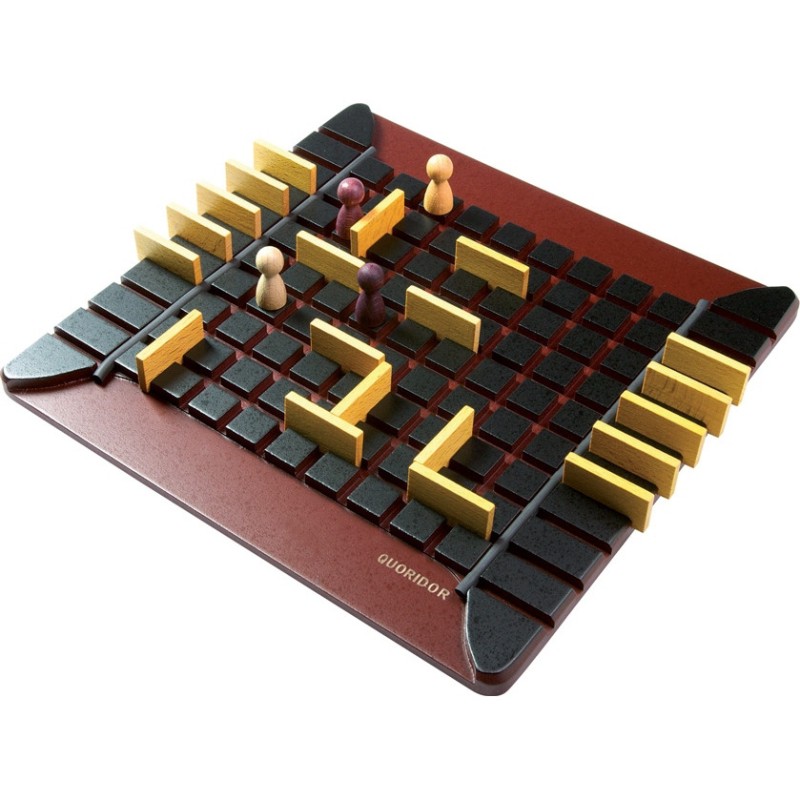 Quoridor est un jeu de réflexion où le but est d'atteindre le premier la ligne opposé. Les joueurs jouent chacun leur tour et ont la possibilité d'effectuer une des deux actions possibles : Avancer son pion ou poser une barrière. Existe en version Mini
