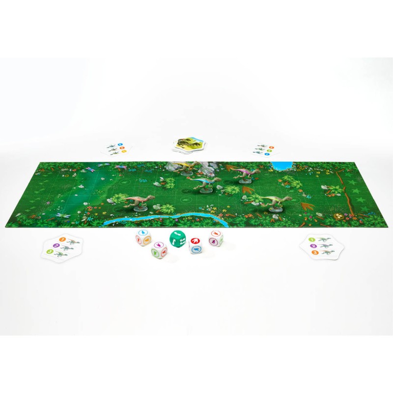 Utilisez les dés pour faire avancer les bons raptors étape par étape, soyez attentif aux mouvements de vos adversaires et essayez de placer votre Top 3 dans les bonnes positions lorsque le premier raptor franchit la ligne d’arrivée.