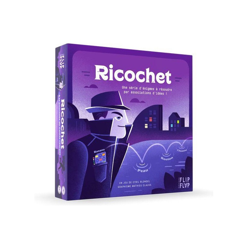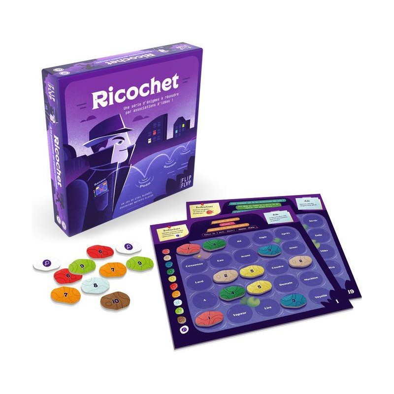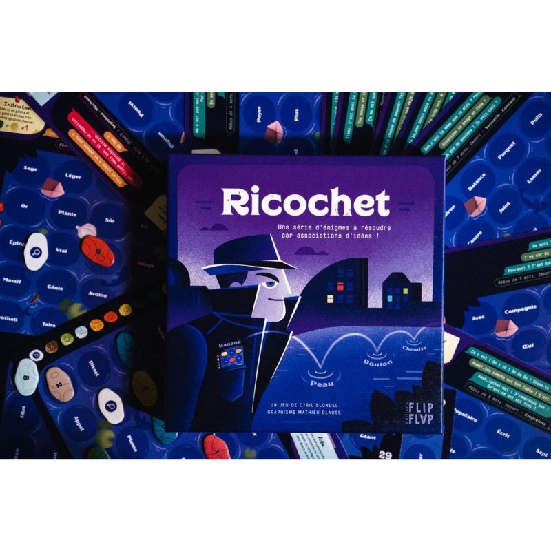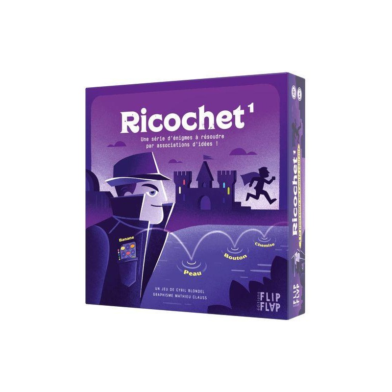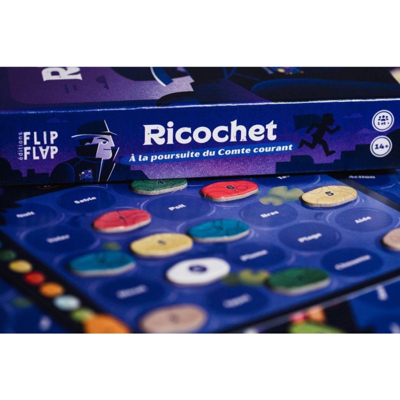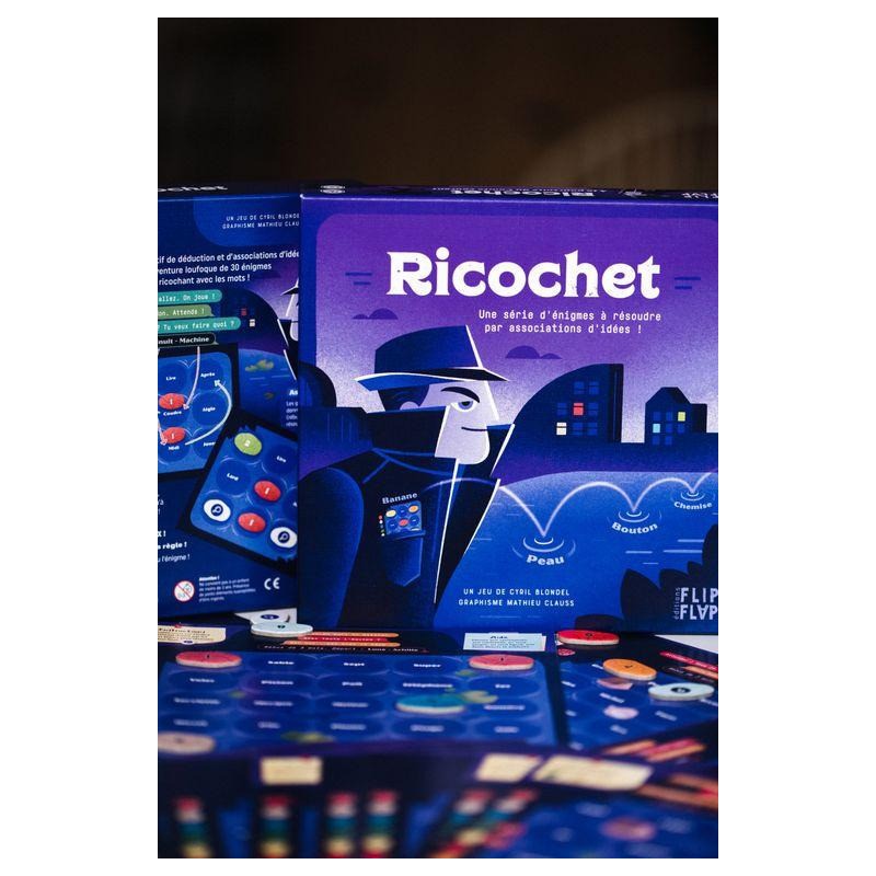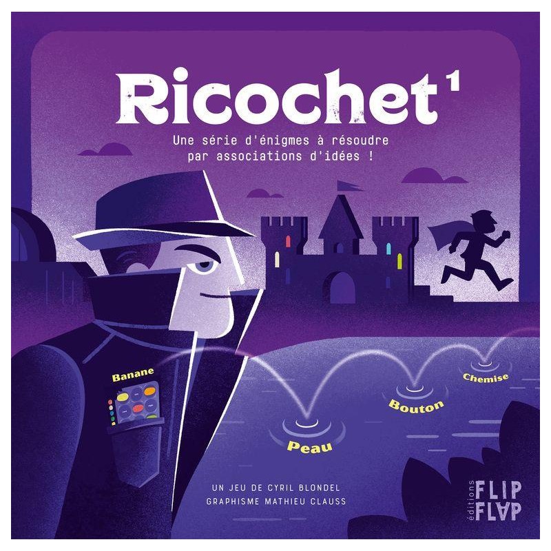 Le jeu Ricochet : À la poursuite du comte courant, propose de jouer avec le sens et le son des mots, par associations d'idées et rébus. Il offre une expérience ludique et cérébrale unique, où l'imagination et la réflexion se rejoignent. Sur les traces d’agents secrets loufoques vous devrez résoudre 30 énigmes successives pour reconstituer un dialogue et découvrir la dernière phrase qui vous éclairera sur toute l’histoire.