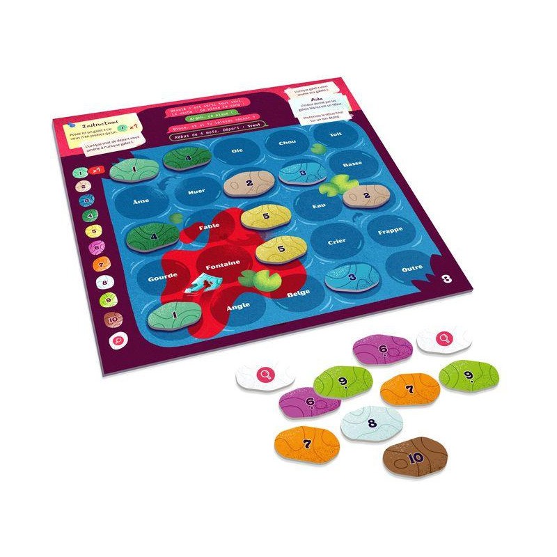 Contenu : 1 règle, 22 galets en carton, 15 Plateaux recto-verso