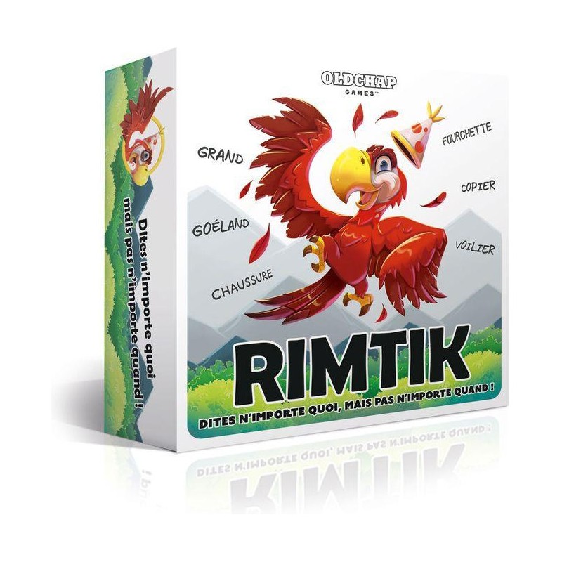 Bienvenue, aventuriers intrépides, sur le territoire des légendaires perroquets des arbres à palabres ! Dans Rimtik, une seule issue s'offre à vous : manier les mots avec vélocité et habileté, quel que soit leur sens... à condition de respecter les règles qui les gouvernent. Les perroquets sages vous inviteront à la rime alors que les perroquets fous vous feront dire tout et n’importe quoi !