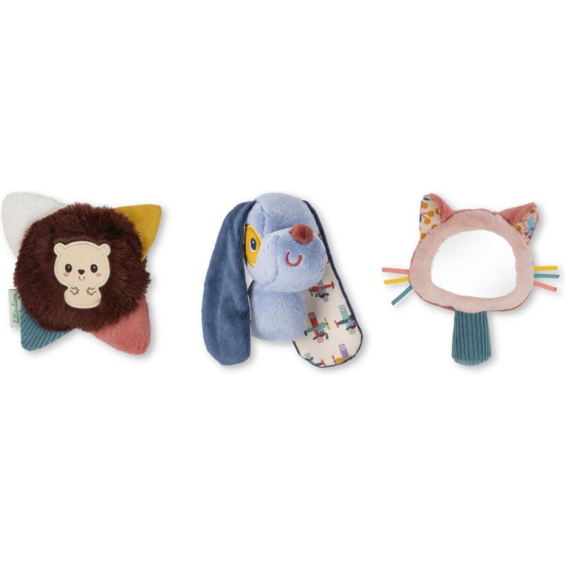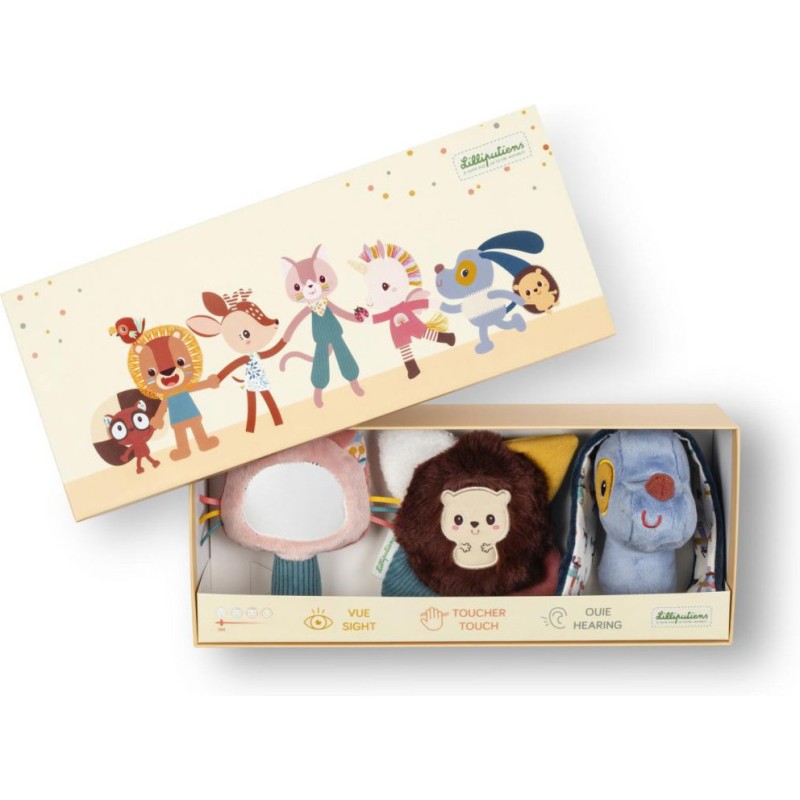 Disponible en mars sur l'eshop - Éveillez les sens de votre tout-petit avec ce set de hochets, composé de trois adorables personnages. Jules le chien stimule l'ouïe grâce à un bruit de papier amusant. Jeanne le chat encourage la découverte de la vue tout en éveillant la curiosité. Enfin, Léon le hérisson offre une expérience tactile unique pour développer le sens du toucher. Présentés dans une jolie boîte cadeau, ces hochets sensoriels sont parfaits pour offrir dès la naissance. : Achetez nos jouets et peluches pour enfants au meilleur prix sur Lilliputiens. Livraison sous 48 heures. Livraison gratuite à partir de 40 euros d'achat.