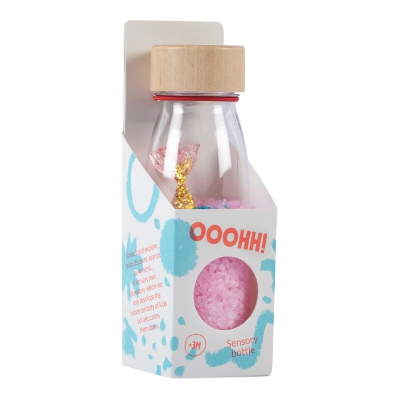 Découvrez la bouteille sensorielle Sound Sirène de la marque Petit Boum. Un jouet d’éveil coloré, inspiré de la pédagogie Montessori, qui stimule les sens des bébés dès 3 mois. Une bouteille à secouer qui va stimuler le sens auditif de votre enfant, qui va aussi explorer chaque détail et se détendre en observant le contenu du flacon. Votre enfant va pouvoir observer, agiter et découvrir le doux son des éléments. Une invitation à explorer, à éveiller les sens et la curiosité des plus petits.