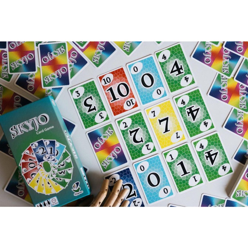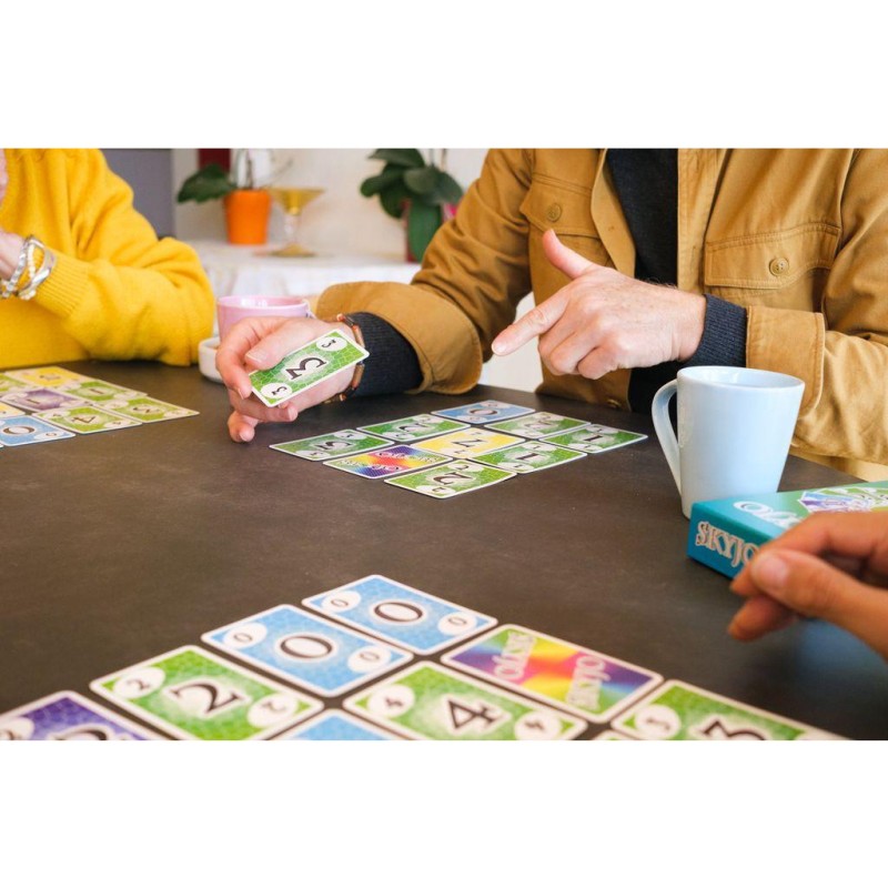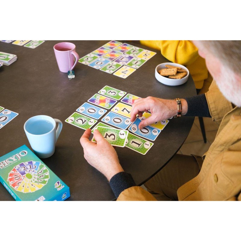 Dans Skyjo, anticipez, soyez audacieux dans vos décisions et remplacez vos cartes judicieusement pour avoir le moins de points à la fin de la partie. Un jeu de cartes simple, subtil et terriblement addictif !