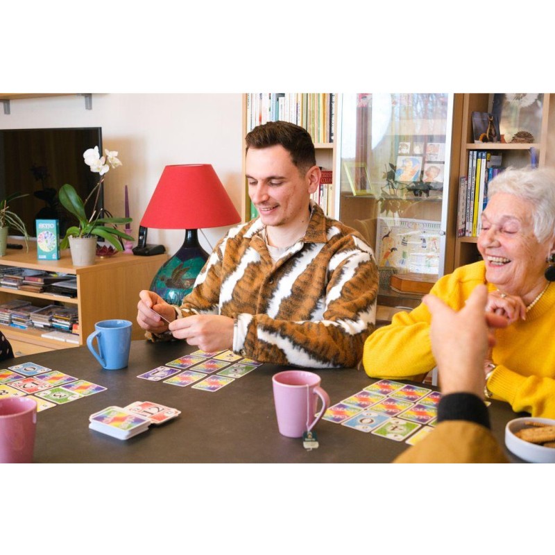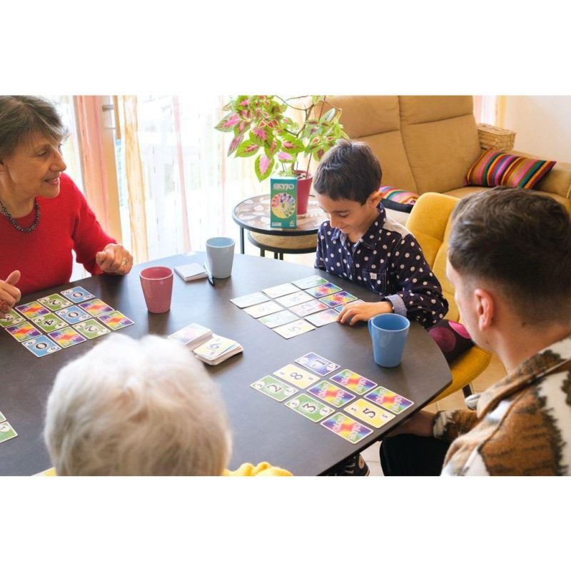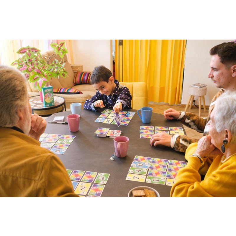 Terriblement addictif… Ses règles simples et ses parties rapides, donnent envie de les enchaîner encore et encore. Intergénérationnel, le jeu Skyjo permet de jouer en famille avec les enfants mais aussi papy et mamie. Autre bon point, le jeu fonctionne parfaitement à deux joueurs, résultat on le sort partout et en toutes occasions.